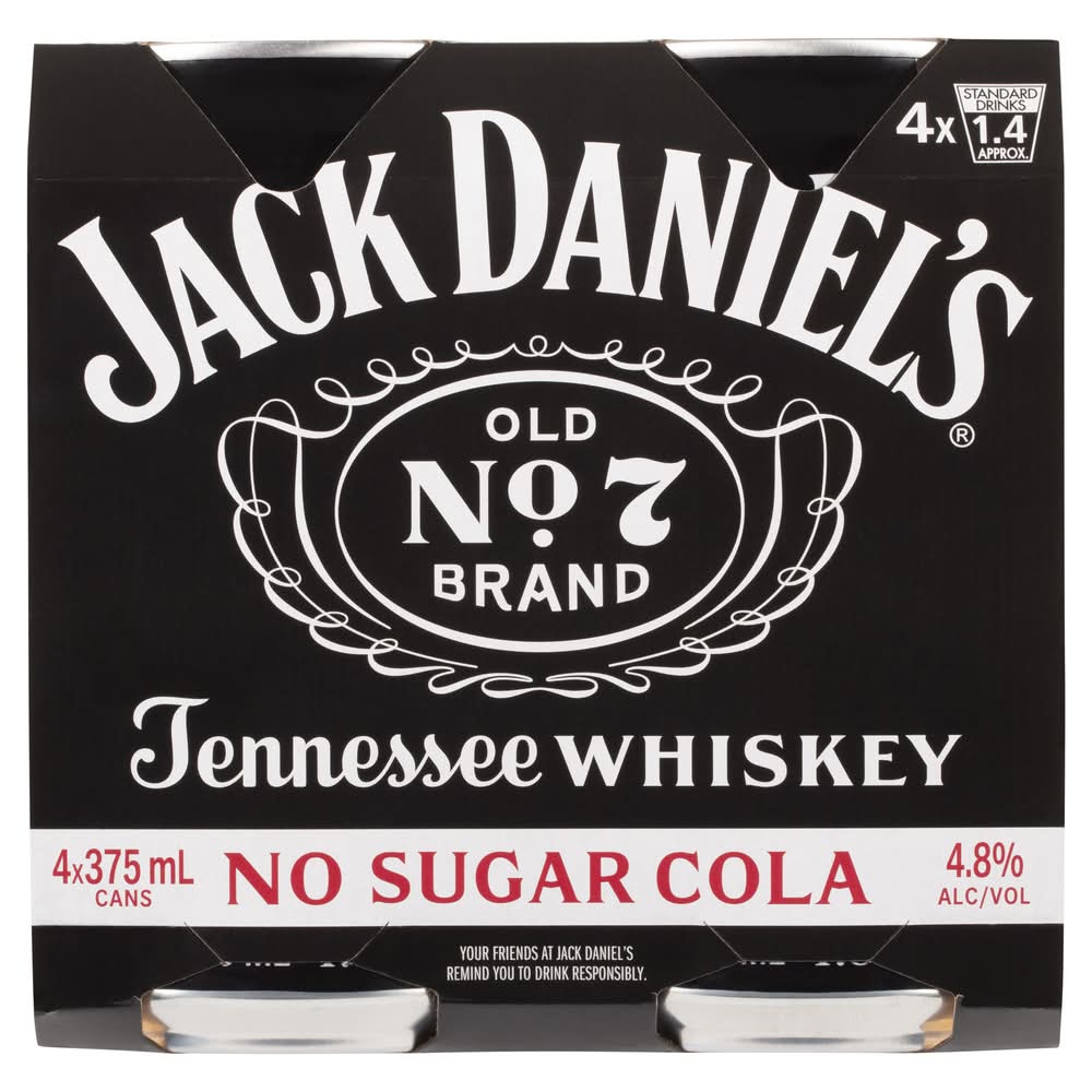 Jack Daniel's Old No. 7 No Sugar Cola Tennessee Whiskey (4 x 375mL)