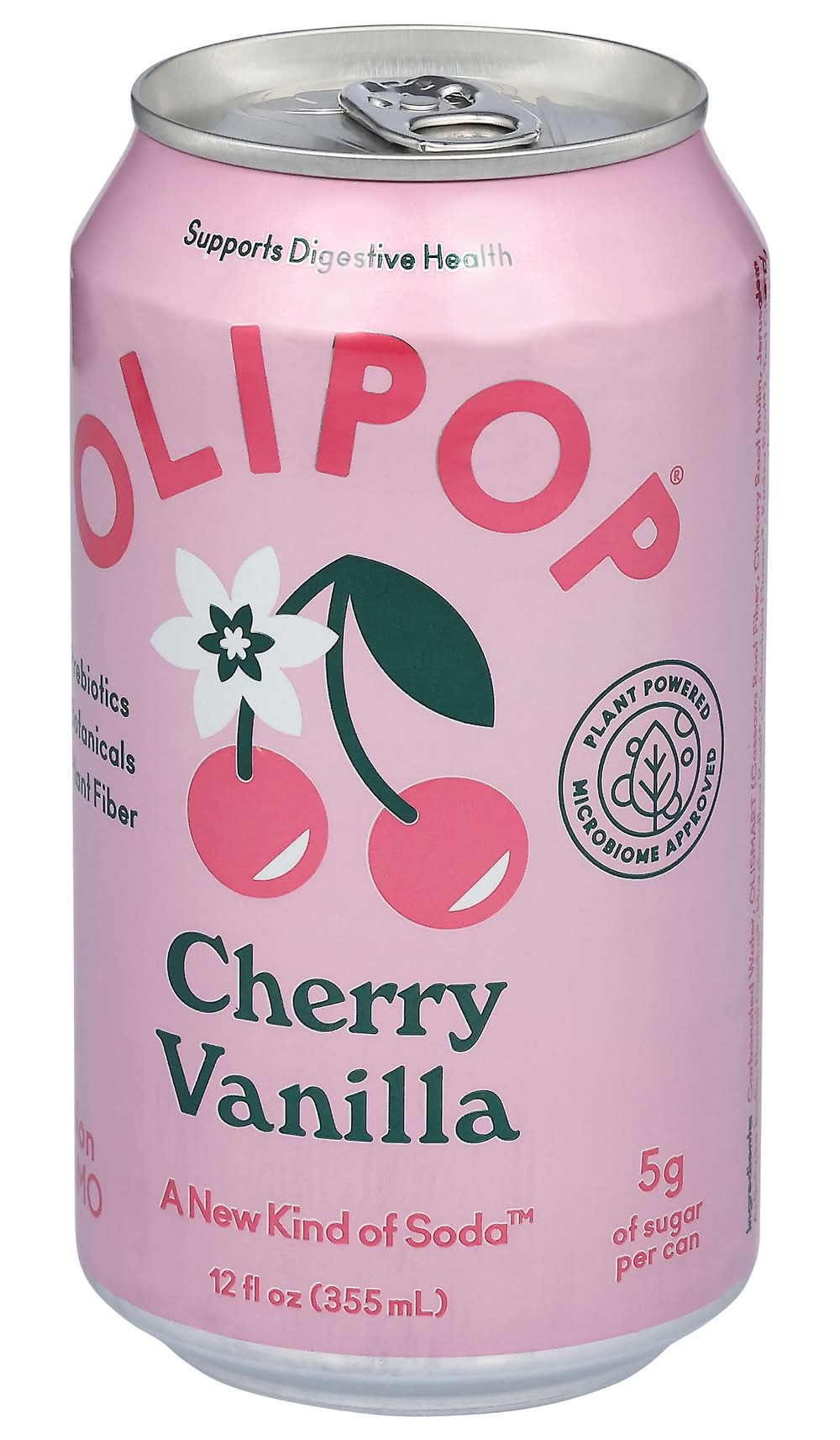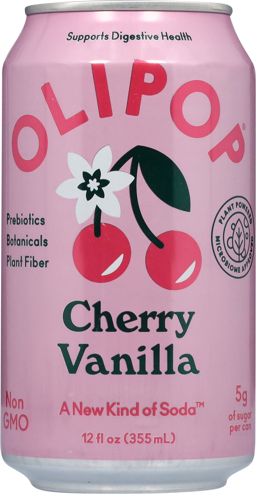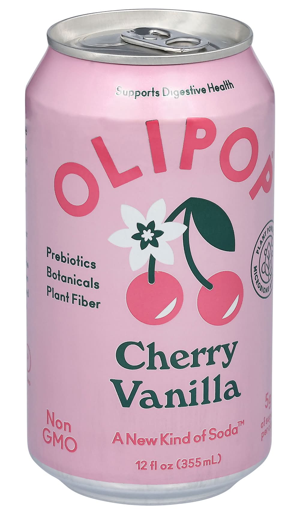We pinpointed the cherry pie flavor we were craving with a careful combination of tart cherries and the sweet tang of rainier cherries, then rounded things out with the soft and sumptuous taste of vanilla bean. • Brand: Olipop • Flavor: Cherry-vanilla • gluten-free, vegan, GMO-free