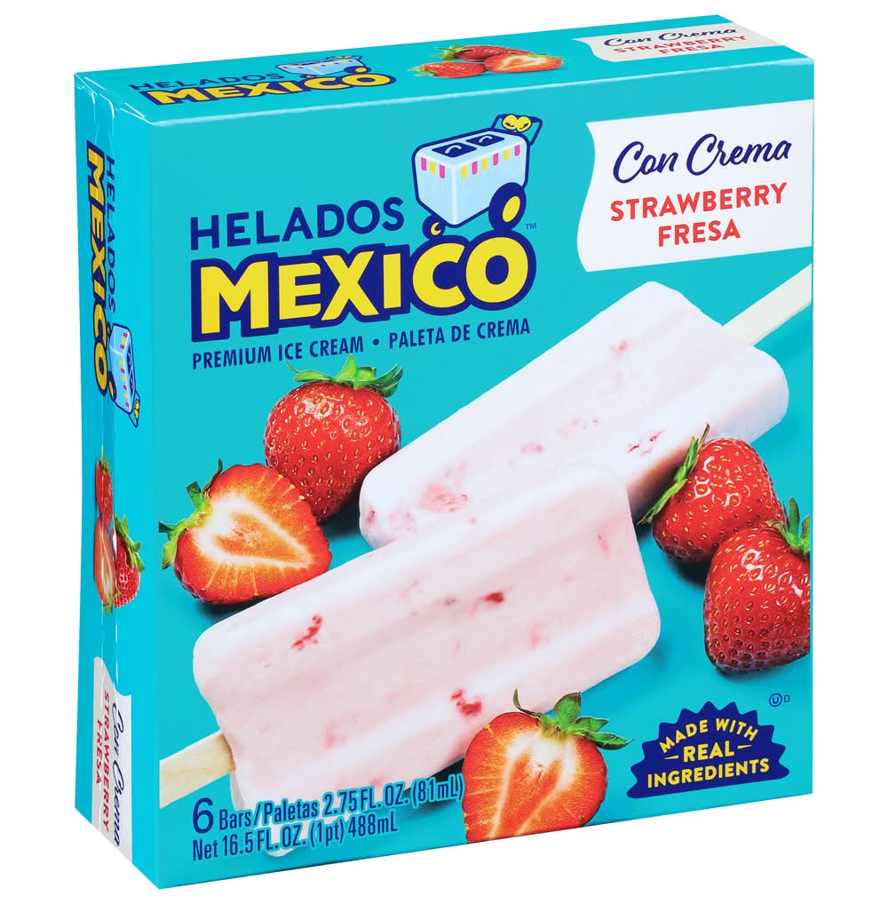 Helados Mexico Premium Ice Cream Bars, Strawberry Fresa (6 x 2.75 fl oz)