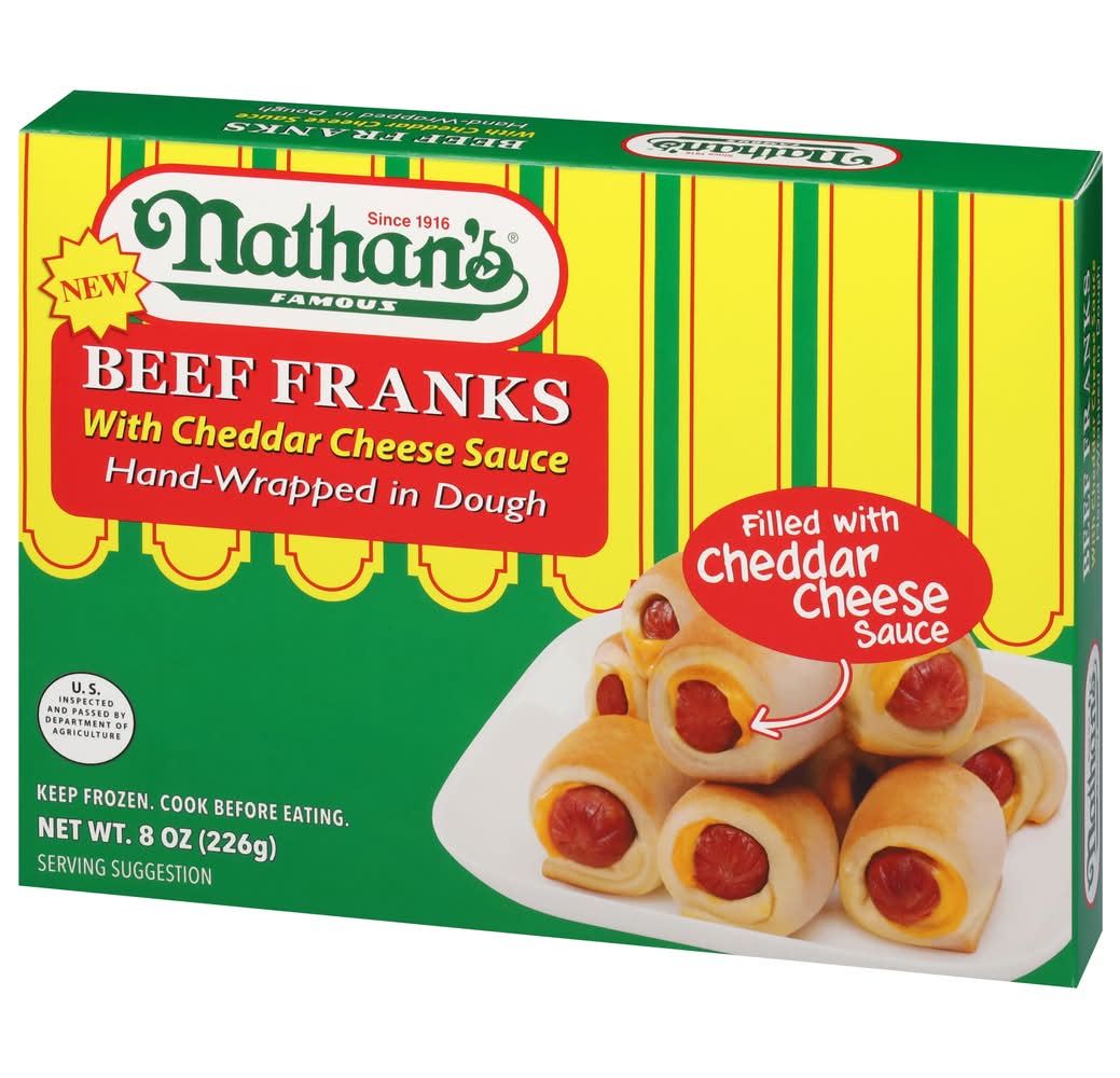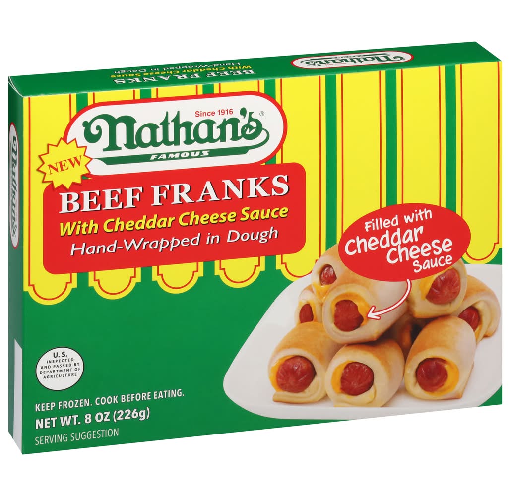 Nathan's Famous Beef Franks With Cheddar Cheese Sauce (8 oz)