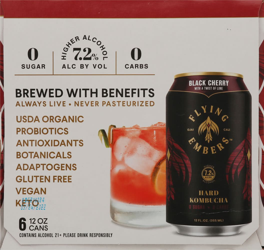 Flying Embers Black Cherry Hard Kombucha Beer (6 x 12 oz)