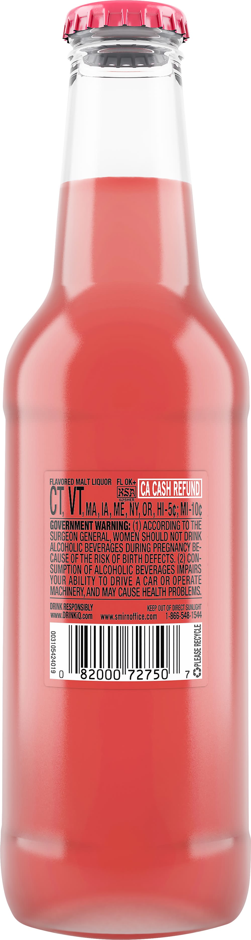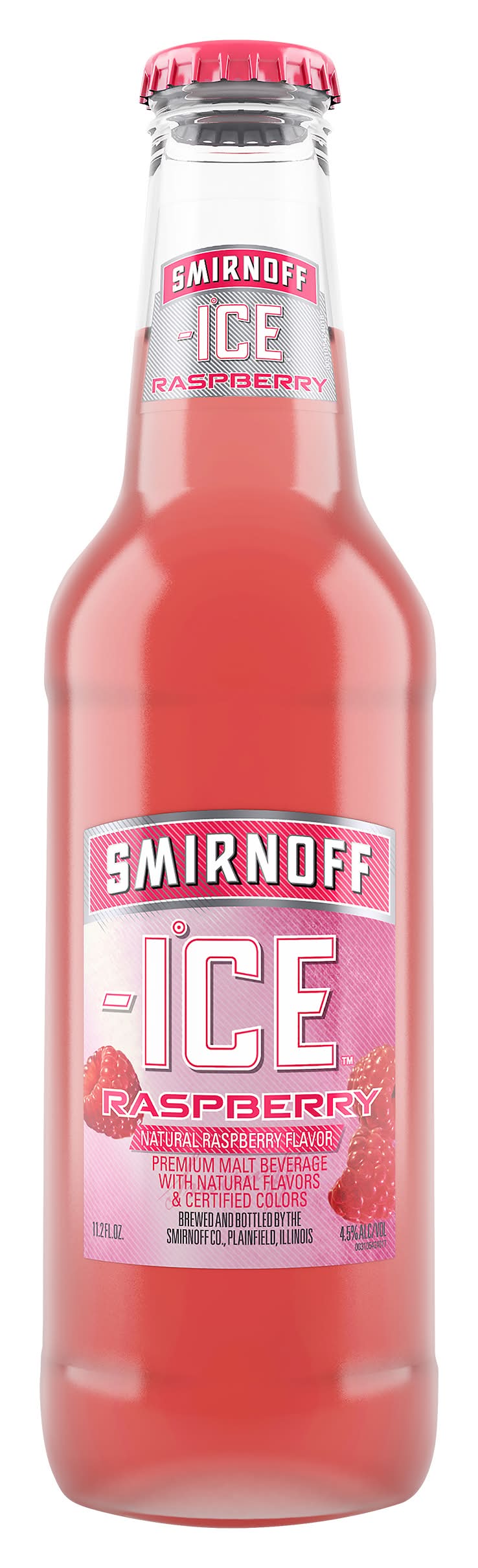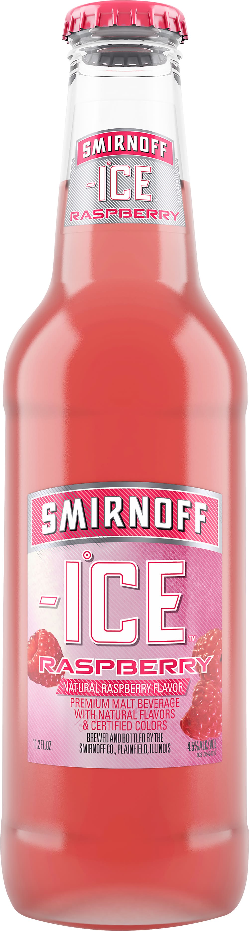 Premium malt beverage with natural flavors & certified colors. Flavored malt liquor. Natural raspberry flavor. Drink responsibly. www.drinkiq.com. www.smirnoffice.com. Please recycle. 4.5% alc/vol. 9 • Alcohol by volume: 4.5% • Packaging: Reusable