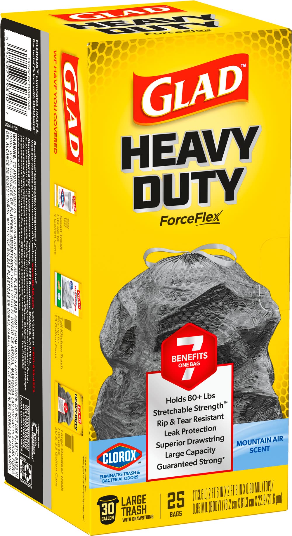 Glad Clorox Heavy Duty Forceflex Trash Bags 30 Gal, Mountain Air, L (25 ct)