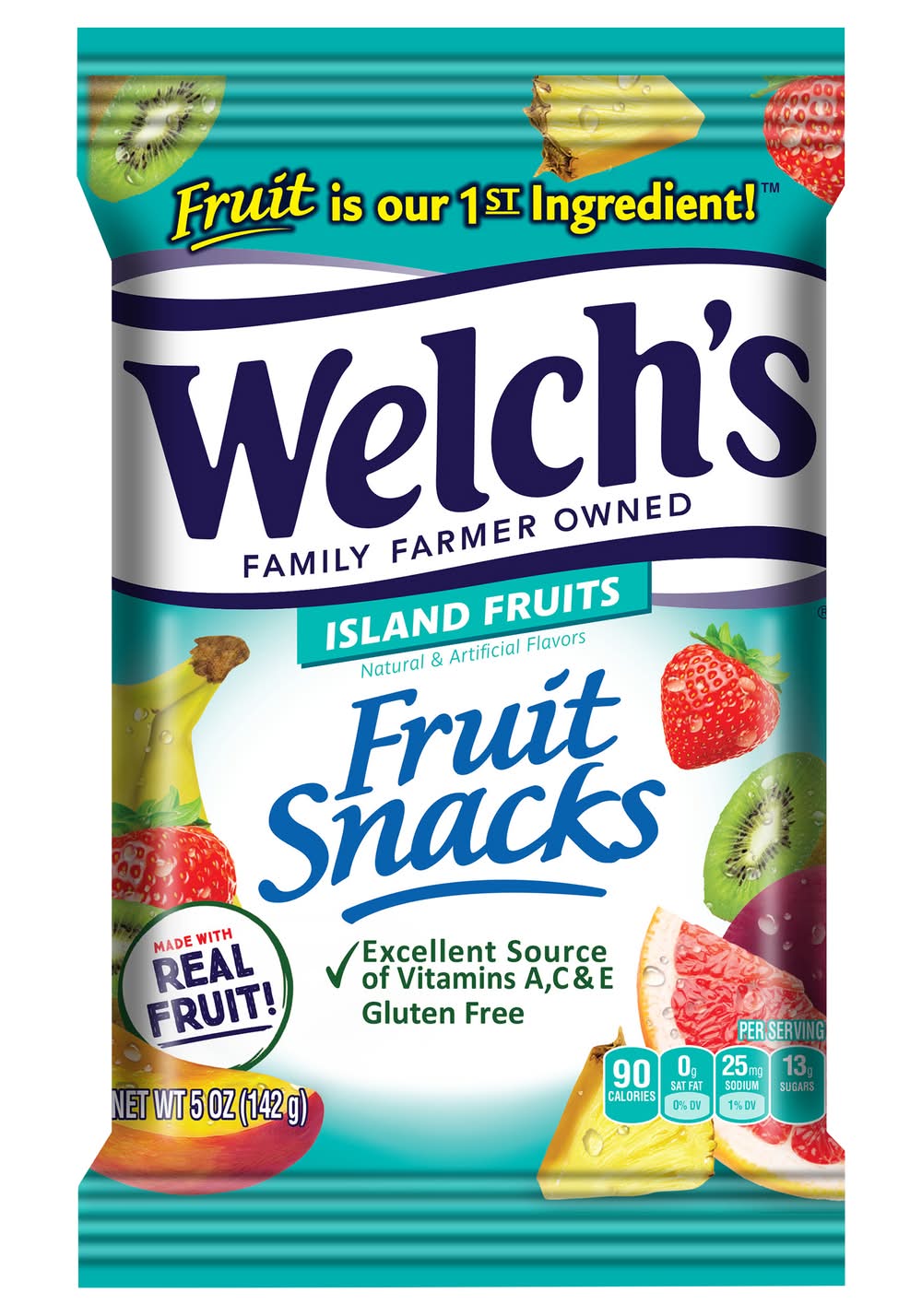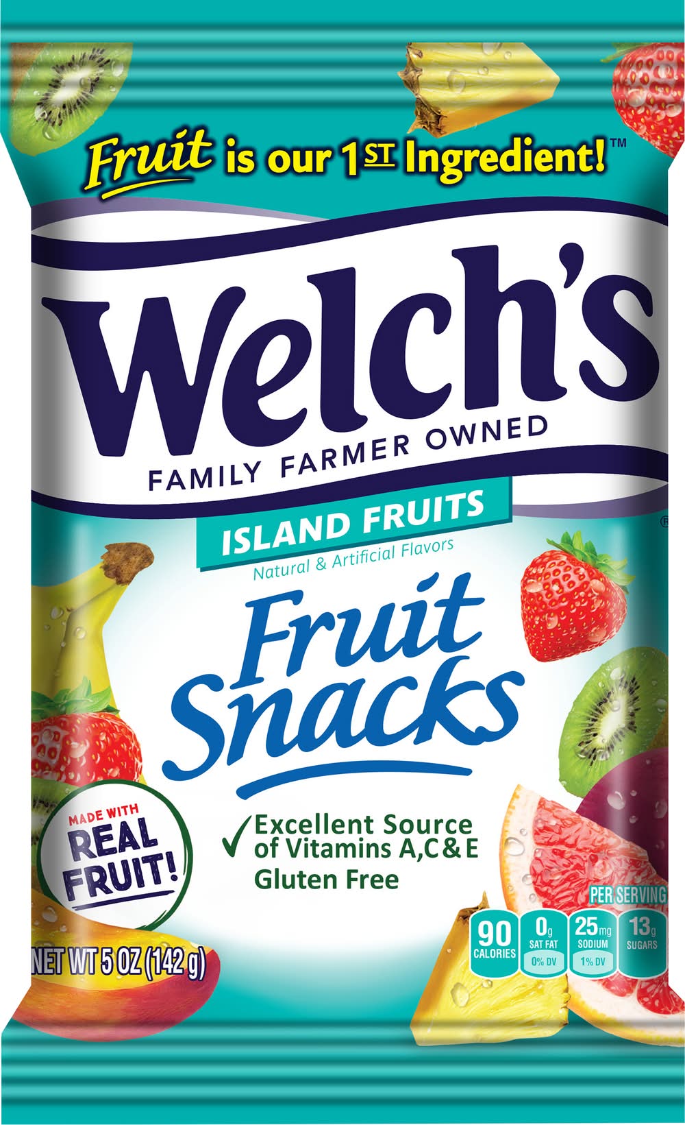 Natural and artificial flavors. Excellent source of vitamins A, C & E. Fruit is our 1st ingredient. Family farmer owned. Made with real fruit. At Welch's, we put the fruit in fruit snacks. We make the brands you love. These fruit snacks are not intended to replace fresh fruit in the diet. No preservatives. Flavor: Island fruits