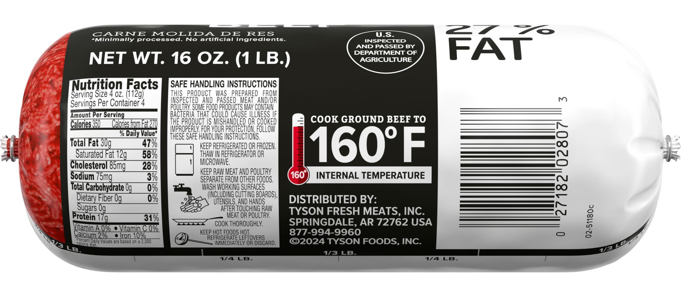 Directions for use: Safe Handling Instructions: This product was prepared from inspected and passed meat and/or poultry. Some food products may contain bacteria that could cause illness if the product is mishandled or cooked improperly. For your protection, follow these safe handling instructions. Keep refrigerated of frozen. Thaw in refrigerator or microwave. Keep raw meat and poultry separate from other foods. Wash working surfaces (including cutting boards), utensils, and hands after touching raw meat or poultry. Cook thoroughly. Keep hot foods hot. Refrigerate leftovers immediately or discard. Cook ground beef to 160 degrees minimum internal temperature. Color is not an accurate indicator of final cooked temperature. Meat will bloom to a bright red color after exposure to air for 10 minutes. Keep refrigerated. Storage recommendation: Keep Refrigerated.