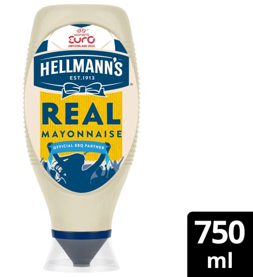 Introducing the Limited Edition Hellmann's UEFA WOMEN'S EURO 2025 Real Mayonnaise, celebrating Hellmann's as the official BBQ partner of UEFA WOMEN'S EURO 2025. This summer, be a BBQ gamechanger with a little help from Hellmann's. Over 100 years ago, Richard Hellmann created the perfect mayonnaise in a New York deli. When he wrote REAL on a jar all those years ago, it was the beginning of something big. Today, it's a word that's essential to everything we do. He also proudly marked each jar by tying a blue ribbon around it, a tradition that endures on our label to highlight our ongoing commitment to great-quality products. We believe in real food, made with real, simple ingredients. That's why we only use free-range eggs. Hellmann's Real Mayonnaise doesn't need an introduction. Its creamy texture and unmistakable amazing taste speak for themselves. The secret to our mayonnaise is that it brings together even the simplest ingredients you already have at home to create flavourful dishes. We've all been there - the fridge is full of leftovers, yet it still seems like there's nothing to eat. Grab a bottle of Hellmann's and make yourself the perfect tuna mayo sandwich, a jacket potato topped with mayo, a crispy grilled cheese sandwich or a tasty burger. UEFA WOMEN'S EURO 2025 is trademarked. Unilever UK Ltd., Hellmann's,Freepost ADM 3940,London,SW1A 1YR.