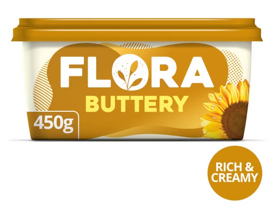Keen bakers and sandwich makers rejoice! Flora Buttery is rich and creamy with a deliciously buttery taste. Perfect for folding into your Victoria sponge cake mixture, melting onto your jacket potatoes or spreading on your favourite toasted bread. Flora UK , PO Box 80314, London, SE1P 6TH