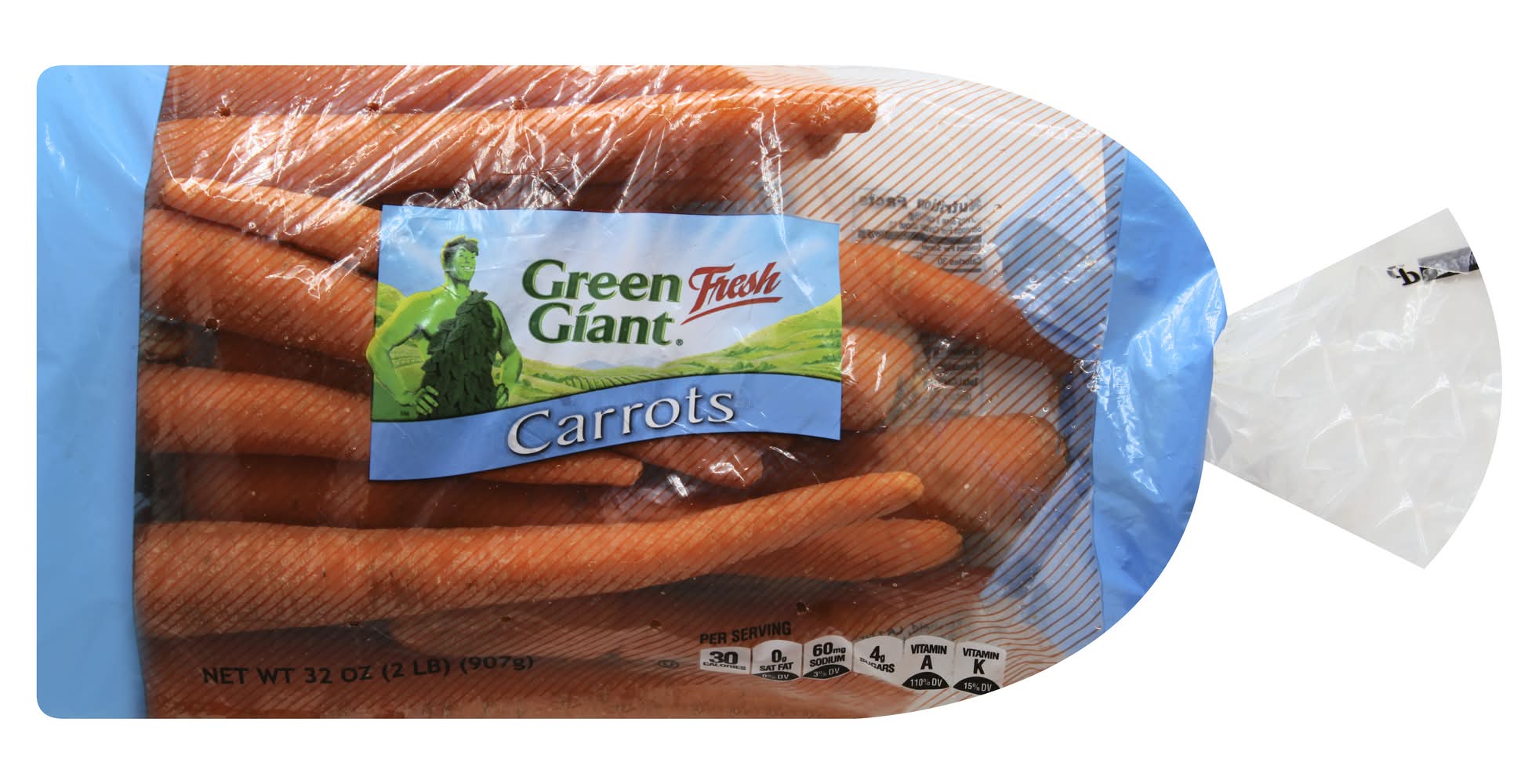 Fresh serving suggestions: chop whole carrots into bite size pieces, steam and toss with your favorite cooked pasta. great as an addition to one spot meals, such as stews and pot roasts. roast carrots alongside potatoes and sweet potatoes. cook carrots until tender, puree with sweet potatoes and add fresh rosemary for a creamy side dish. slice carrots lengthwise into medium-sized sticks, drizzle with olive oil and seasoning and bake until tender for carrot fries. grate carrots and combine with cake batter and raisins for a carrot cake dessert. fresh snacking ideas: enjoy fresh carrots with cheese sticks for an energizing snack. add carrots along with other green giant fresh vegetables and create your own vegetable tray. dip fresh carrots, celery and broccoli into your favorite dressing, hummus or veggie dip. chop or thinly slice carrots and toss with chopped apples, walnuts and raisins. juice carrots with spinach and apples for a fresh and vitamin-rich beverage. keep refrigerated.