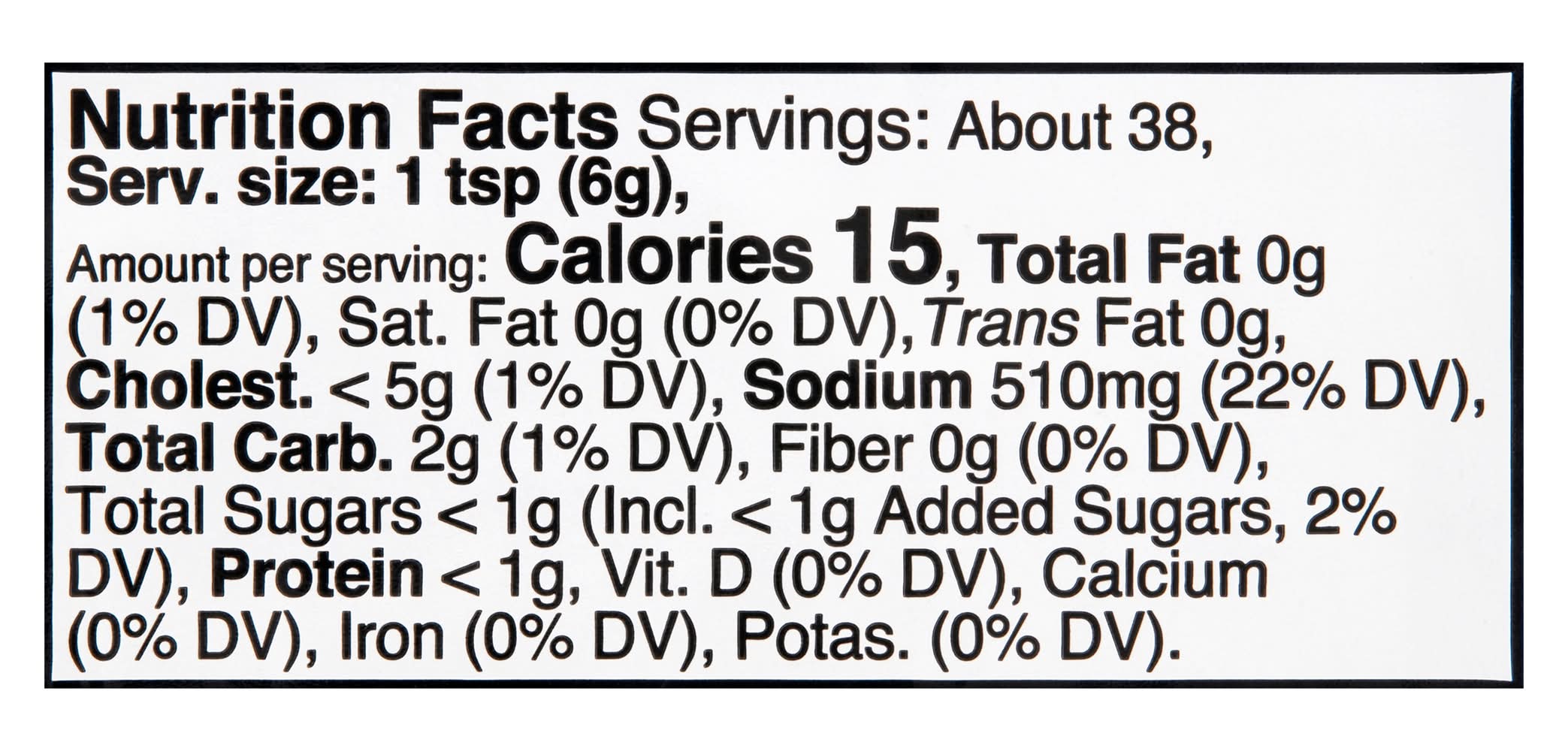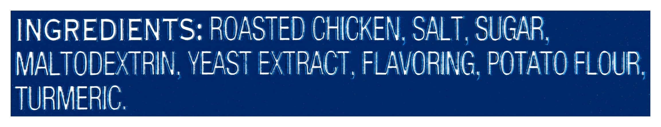 Ingredients: Roasted Chicken, Salt, Sugar, Maltodextrin, Yeast Extract, Flavoring, Potato Flour, Turmeric