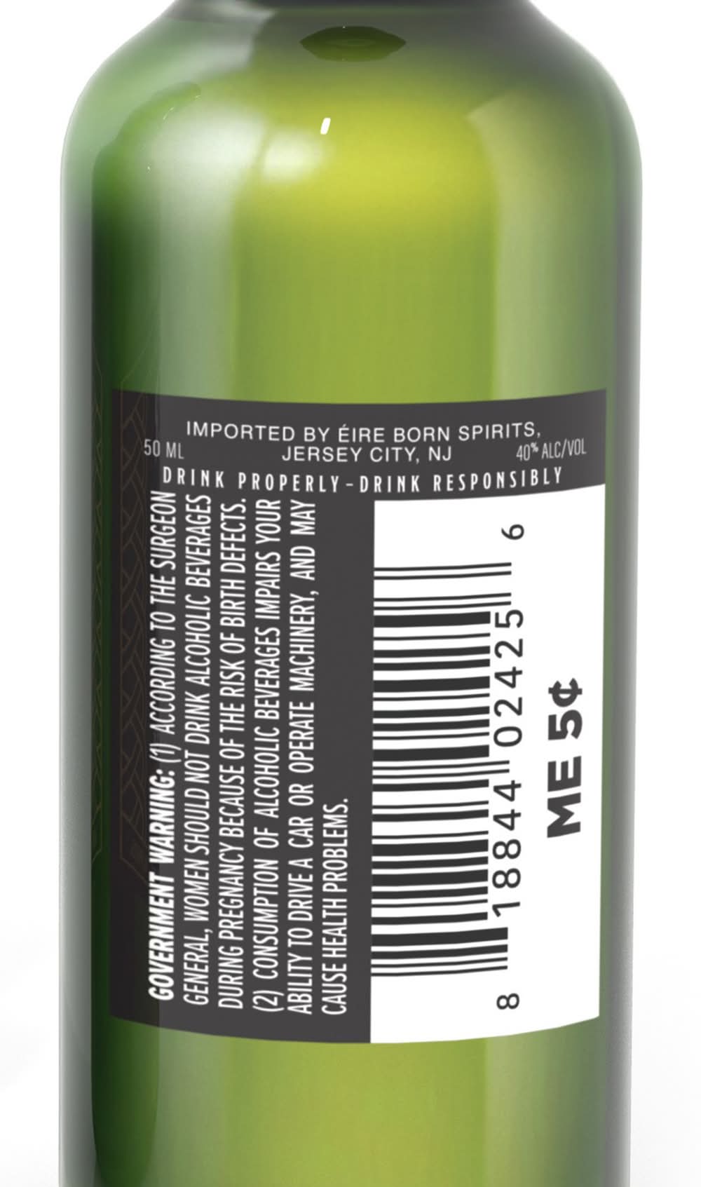 It is crafted to be enjoyed on its own or with mixers such as ginger ale. • Alcohol by volume: 40% • Éire Born Spirits, JERSEY CITY, NJ
