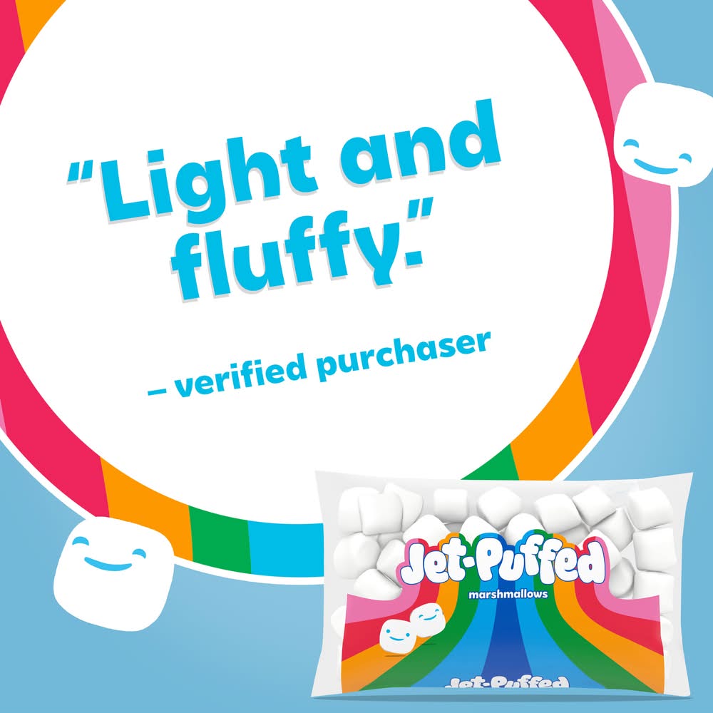 Marshmallows are a delicious and versatile dessert topping or sweet snack. Our Product deliver the delicious taste and fluffy texture you know and love. With zero trans fat and zero total fat per serving, It make a fun snack for kids or a mouthwatering addition to your favorite dessert recipes. Use our fluffy marshmallows to make rice cereal treats. Try putting some roasted marshmallows and chocolate on graham crackers to make s'mores. You could also try using our marshmallows for hot chocolate. Each package of marshmallows comes sealed in a 12-ounce bag for lasting freshness until you're ready to enjoy. • Kraft heinz foods company, Chicago,IL,60601 • Packaging: Reusable