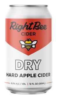 Right Bee Cider Hard Dry Cider is a beverage crafted solely from fermented apples, with no additives or back sweetening involved. Each pack contains six 12 fl oz bottles. • Pack size: 6 • Alcohol by volume: 6%