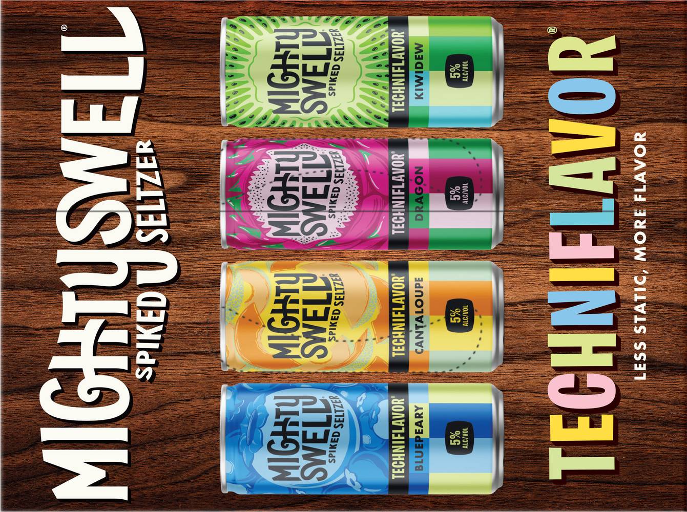 Mighty Swell Techniflavor Spiked Hard Seltzer, (Bluepeary- Cantaloupe-Dragon-Kiwidew) (12 x 12 fl oz)