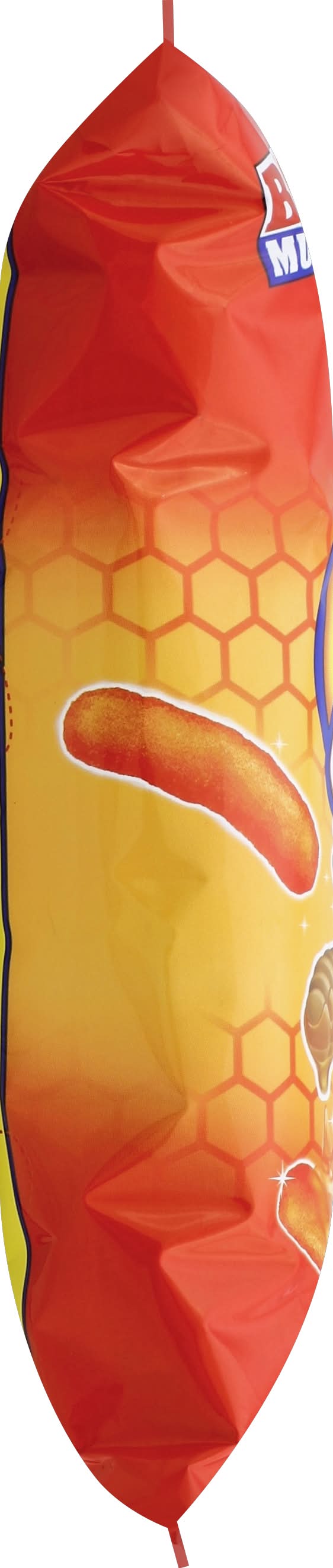 Ingredients: Corn Meal, Vegetable Oil (May Contain One or More of the Following: Corn, Cottonseed, Sunflower, Soybean or Canola Oil), Sugar, Salt, Honey, Corn Flour, Whey, Fructose, Onion Powder, Mono-Sodium Glutamate, Dextrose Monohydrate, Wheat Starch, Cheddar Cheese (Cultured Milk, Salt, Enzymes), Natural Flavors, Tomato Powder, Buttermilk, Spices, Red 40 Lake, Butter, Maltodextrin, Yellow 5 Lake, Garlic Powder, Paprika Extract, Butter Oil, Sodium Phosphate, Paprika, Partially Hydrogenated Soybean Oil, Citric Acid, Barley Malt Flour, Hydroxylated Lecithin, Yellow 5, Yellow 6, Annatto (Color), Autolyzed Yeast Extract, Thiamin Hydrochloride, Disodium Guanylate, Disodium Inosinate Contains: Milk, Soybeans, Wheat
