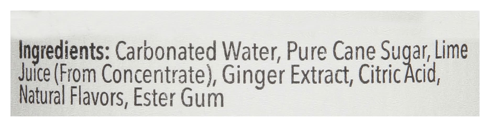 Ingredients: Carbonated Water, Pure Cane Sugar, Lime Juice (from Concentrate), Ginger Extract, Citric Acid, Natural Flavors, Ester Gum