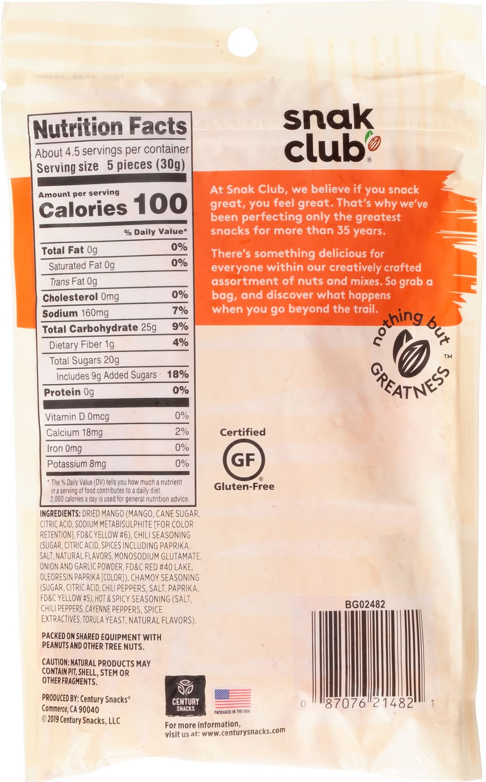 Mango, Chili • Brand: Snak club • gluten-free, low fat • Number of servings: 4
