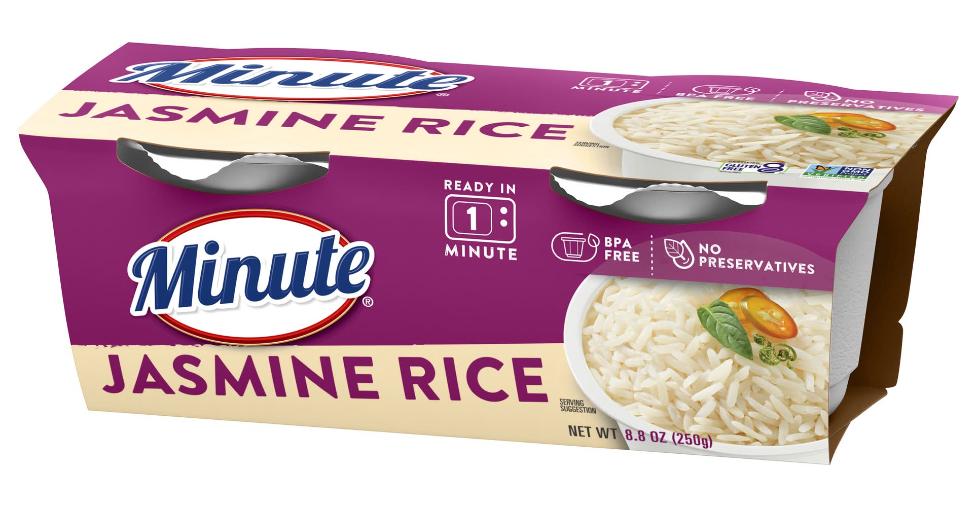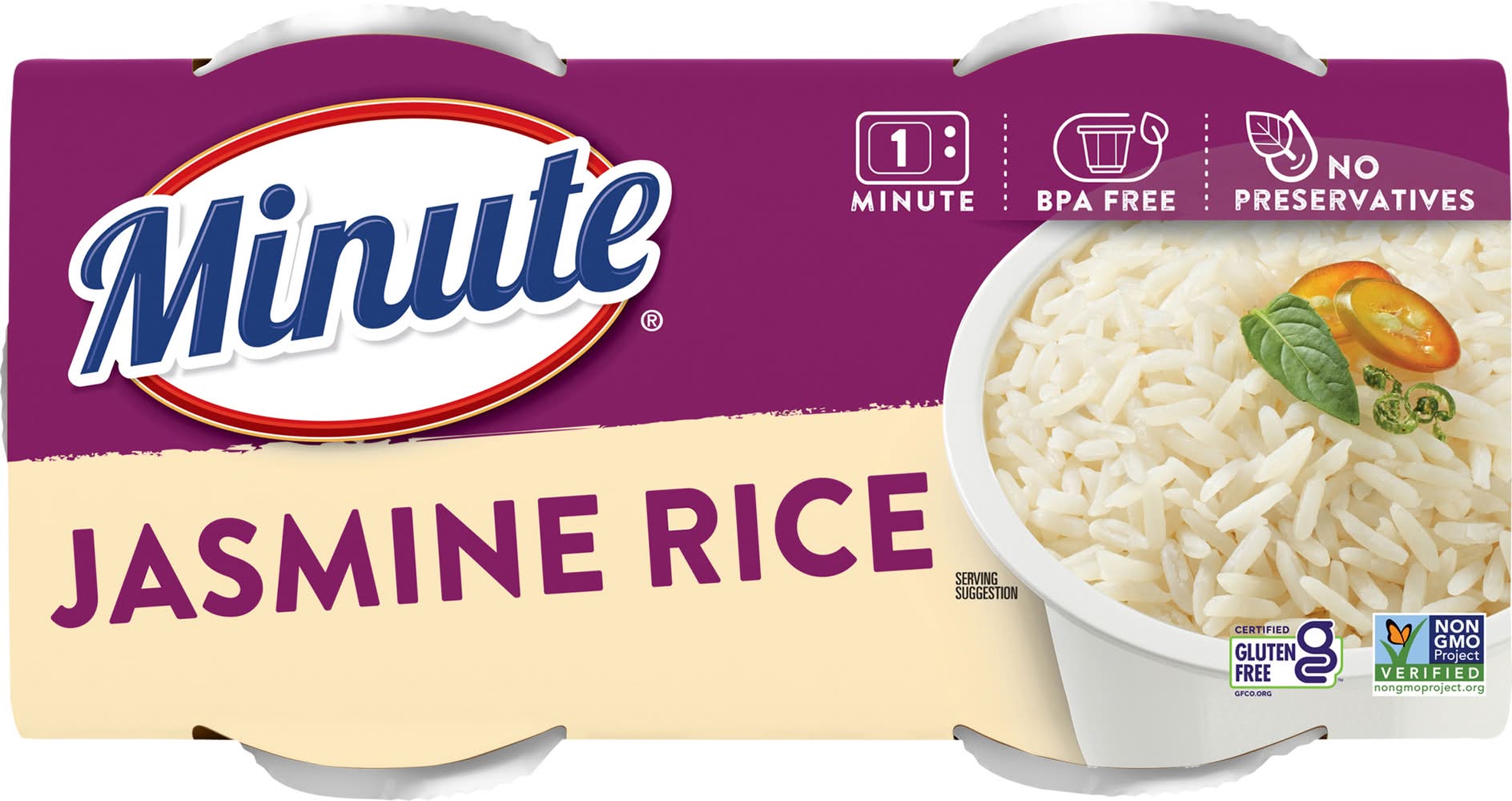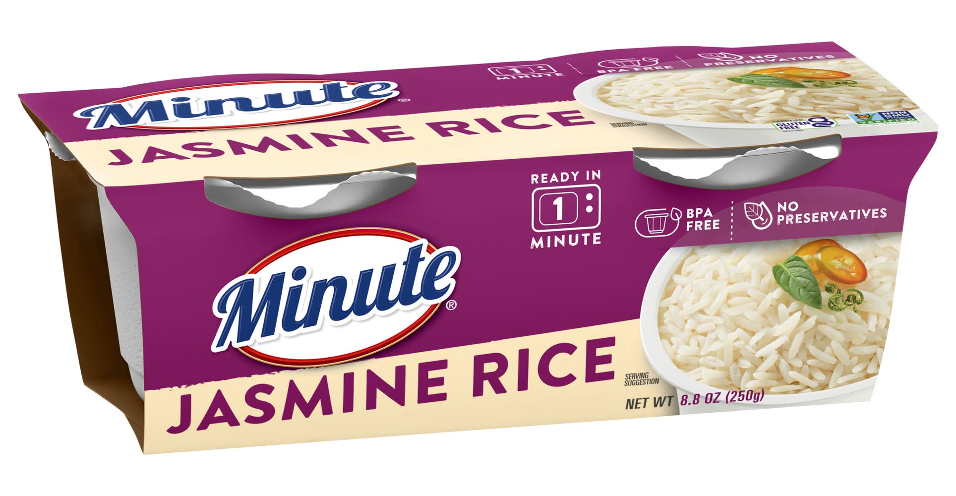 Certified gluten free. gfco.org. Non-GMO Project verified. nongmoproject.org. Ready in 1 minute. No preservatives. Ready to serve. We've made it easy by doing the cooking for you Simply heat and in one minute you can enjoy our ready to serve cup anytime, anywhere Our Guarantee: If you are not completely satisfied with this Minute product, we'll refund the full purchase price. Limit one refund per household. Just send proof of purchase seal and best if used by box with your specific Packaging: Reusable