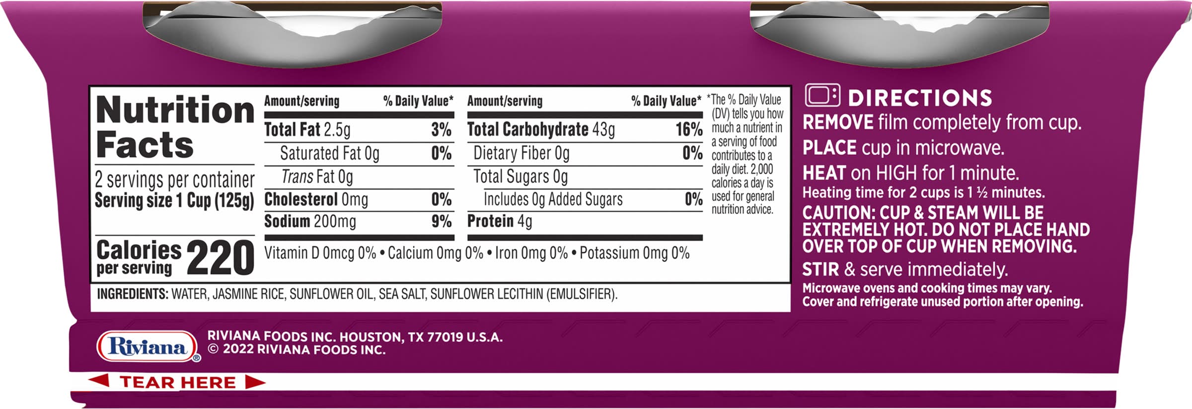 Ingredients: Water, Jasmine Rice, Sunflower Oil, Sea Salt, Sunflower Lecithin (Emulsifier)