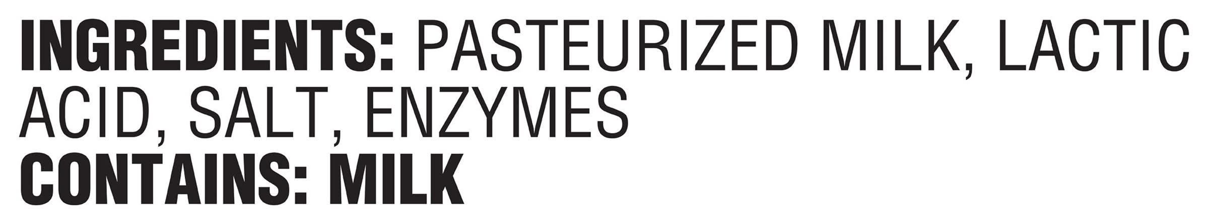 Ingredients: Pasteurized Milk, Lactic Acid, Salt, Enzymes Contains: Milk