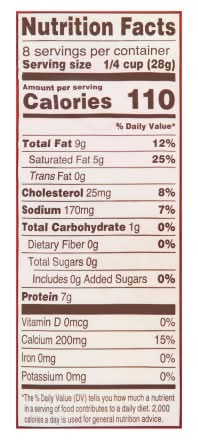 Ingredients: Cheddar Cheese (Pasteurized Milk, Cheese Culture, Salt, Enzymes, Annatto [Color]), Monterey Jack Cheese (Pasteurized Milk, Cheese Culture, Salt, Enzymes), Potato Starch, Corn Starch and Calcium Sulfate Added to Prevent Caking, Natamycin (Natural Mold Inhibitor) Contains: Milk