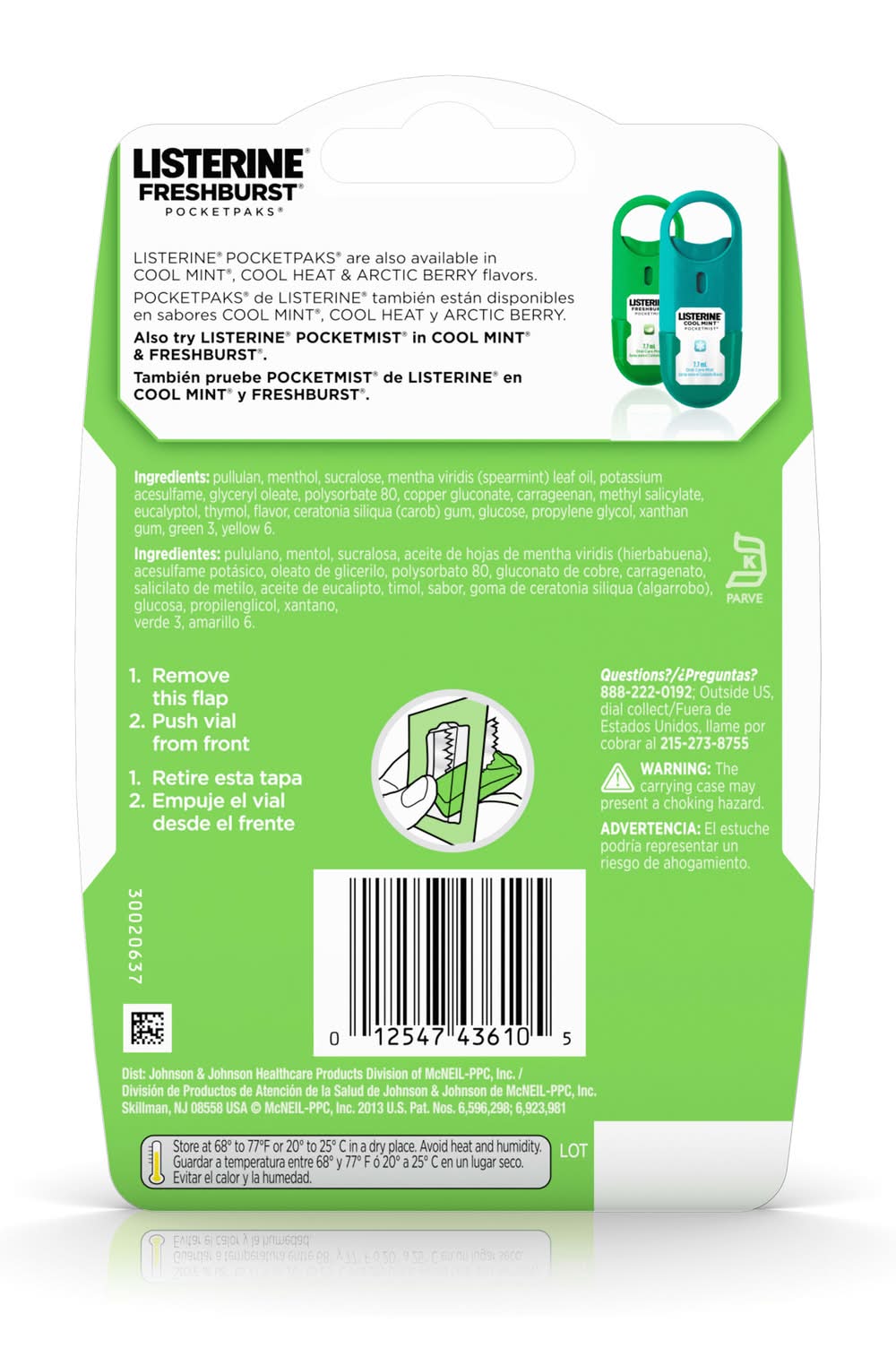 Freshburst Pocketpaks Breath Strips • Pack size: 12 • KenvueProduction - ProductXM, 199 Grandview Road. Skillman, New Jersey, 08558