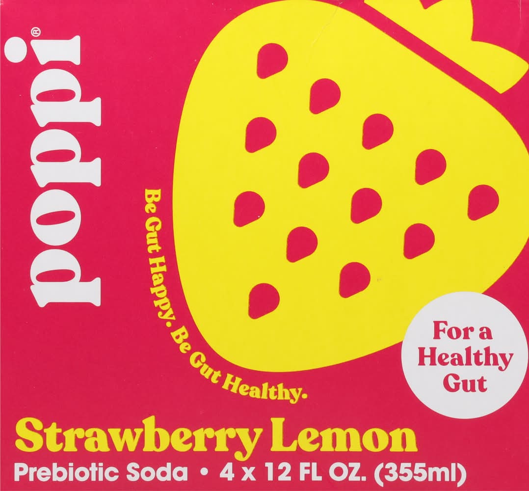 poppi Prebiotic Soda, Strawberry Lemon (4 x 12 fl oz)