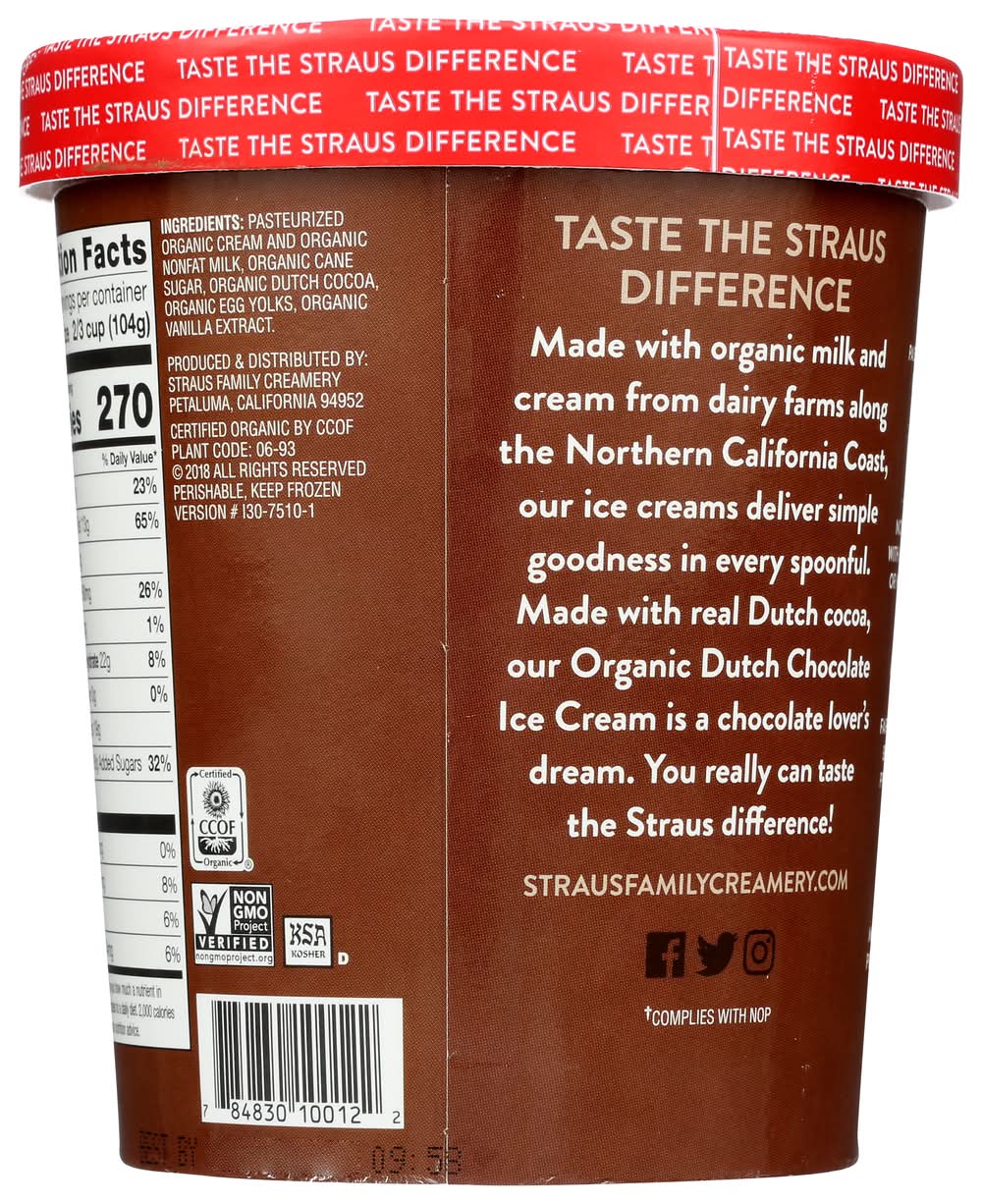 Straus Family Creamery Organic Ice Cream, Dutch Chocolate (1 qt)