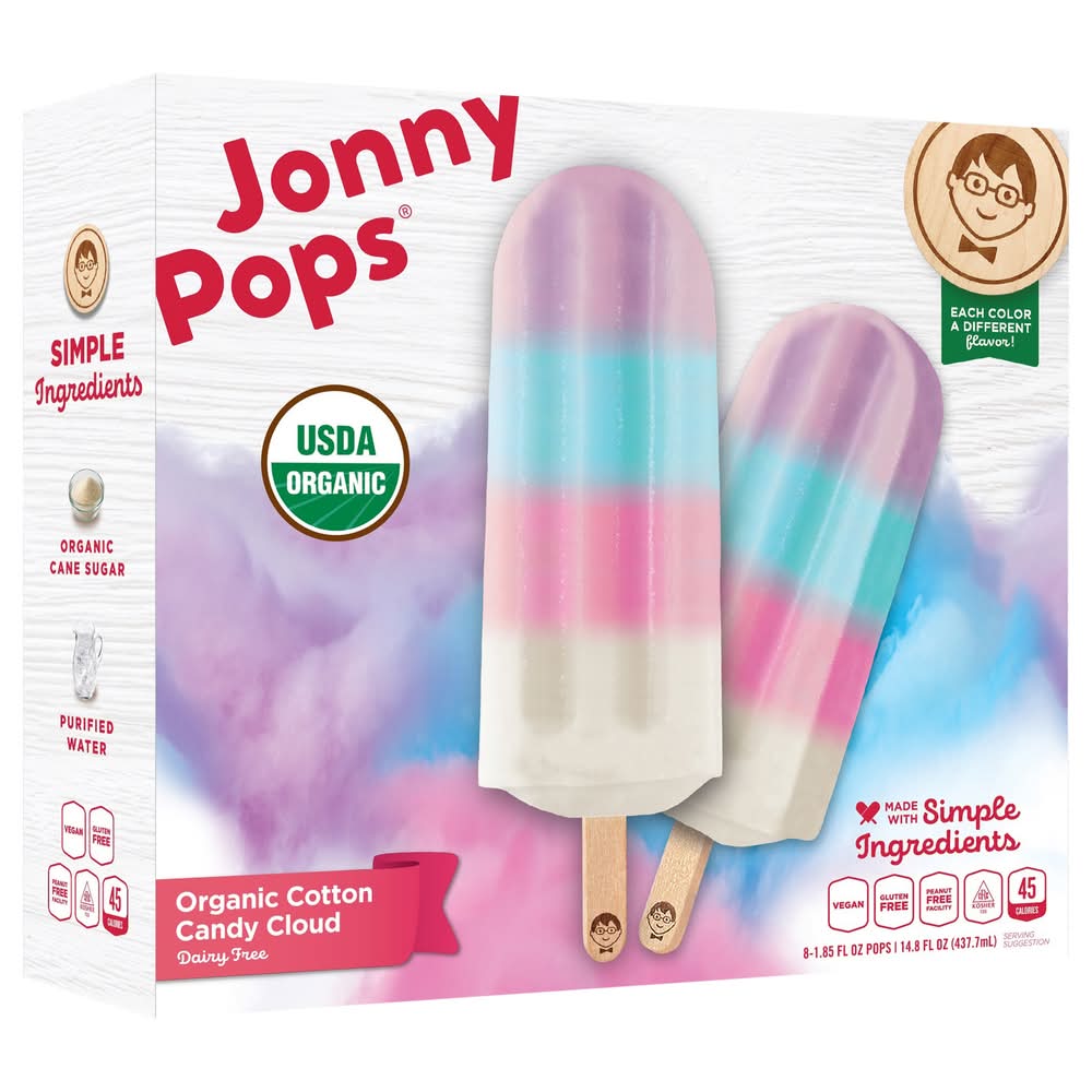 JonnyPops Organic Cotton Candy Cloud Frozen Bars, Assorted (8 x 1.85 fl oz)