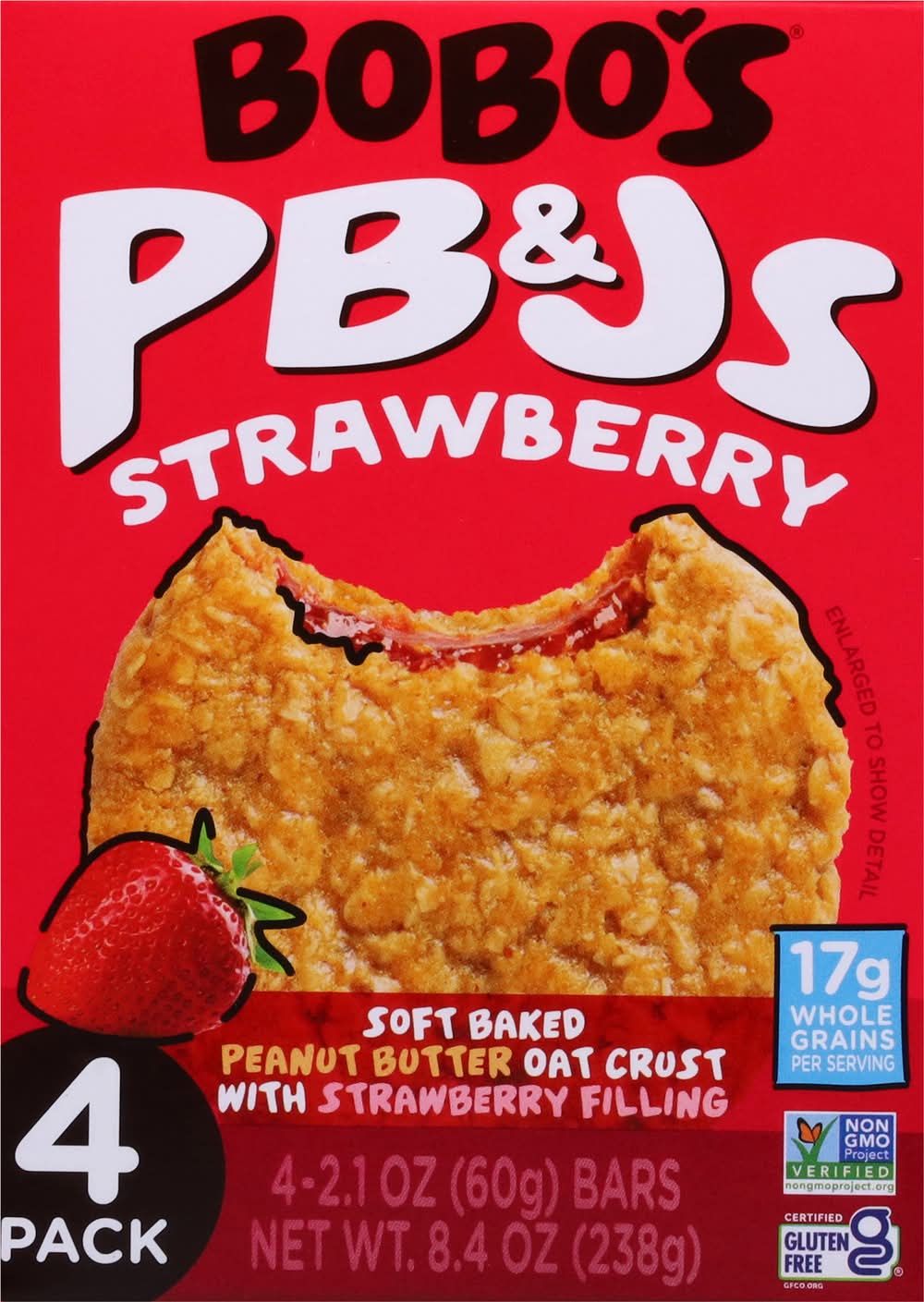 Each Bobo's PB&J starts with whole grain oats mixed with a perfect fruit filling. Each one is gluten-free, Certified Non-GMO, vegan and dairy free! All without boring the daylights out of your taste buds. Every snack is packed full of whole grain oats and tons of flavor to keep your body going and your taste buds begging for more! • Flavor: Strawberry • Pack size: 4