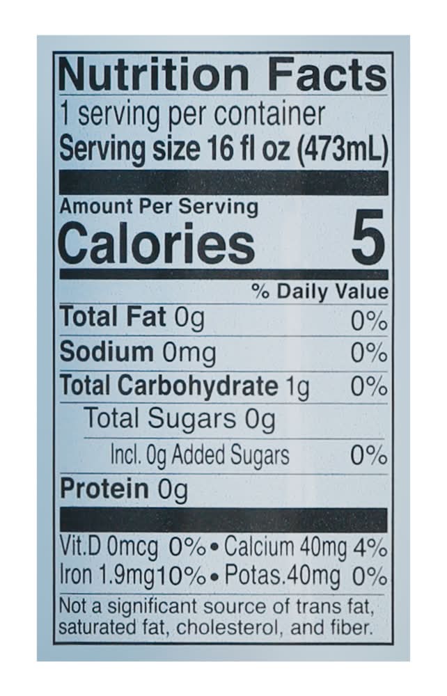 Ingredients: Filtered Water, Lemon Juice Concentrate (Adds a Trivial Amount of Sugar), Lemon Fruit Pulp, Citric Acid, Malic Acid, Sodium Citrate, Natural Flavor, Sucralose, Modified Food Starch, EDTA to Protect Color, FD&C Blue 1