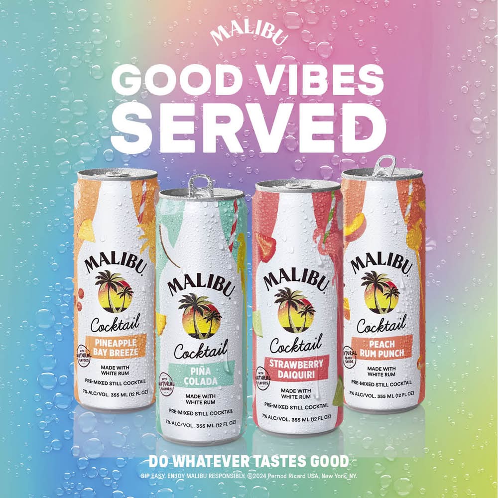 Malibu Still Pre-Mixed Cocktail, Peach (4 x 3 fl oz)