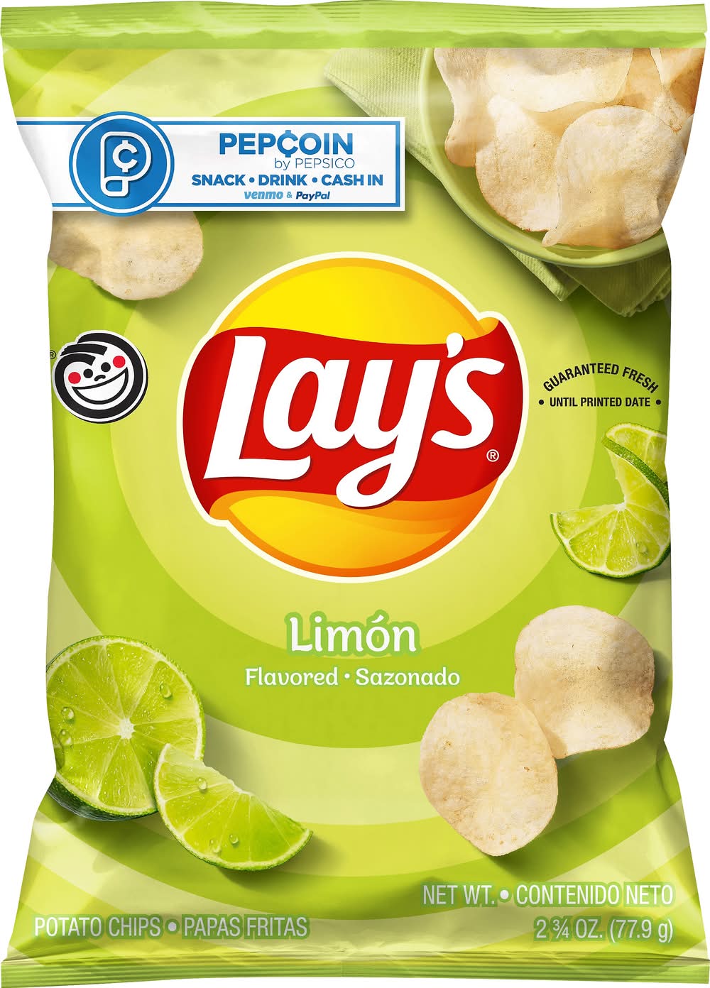 Tasting notes: It all starts with farm grown potatoes, cooked and seasoned to perfection. Then we add the zing of real lime. So every Lay's potato chip is perfectly crispy and delicious. • Brand: Lay's • Flavor: Limon • Number of servings: 3 • Frito-Lay, Inc., Plano, TX, 75024-4099, Ph: 800-352-4477
