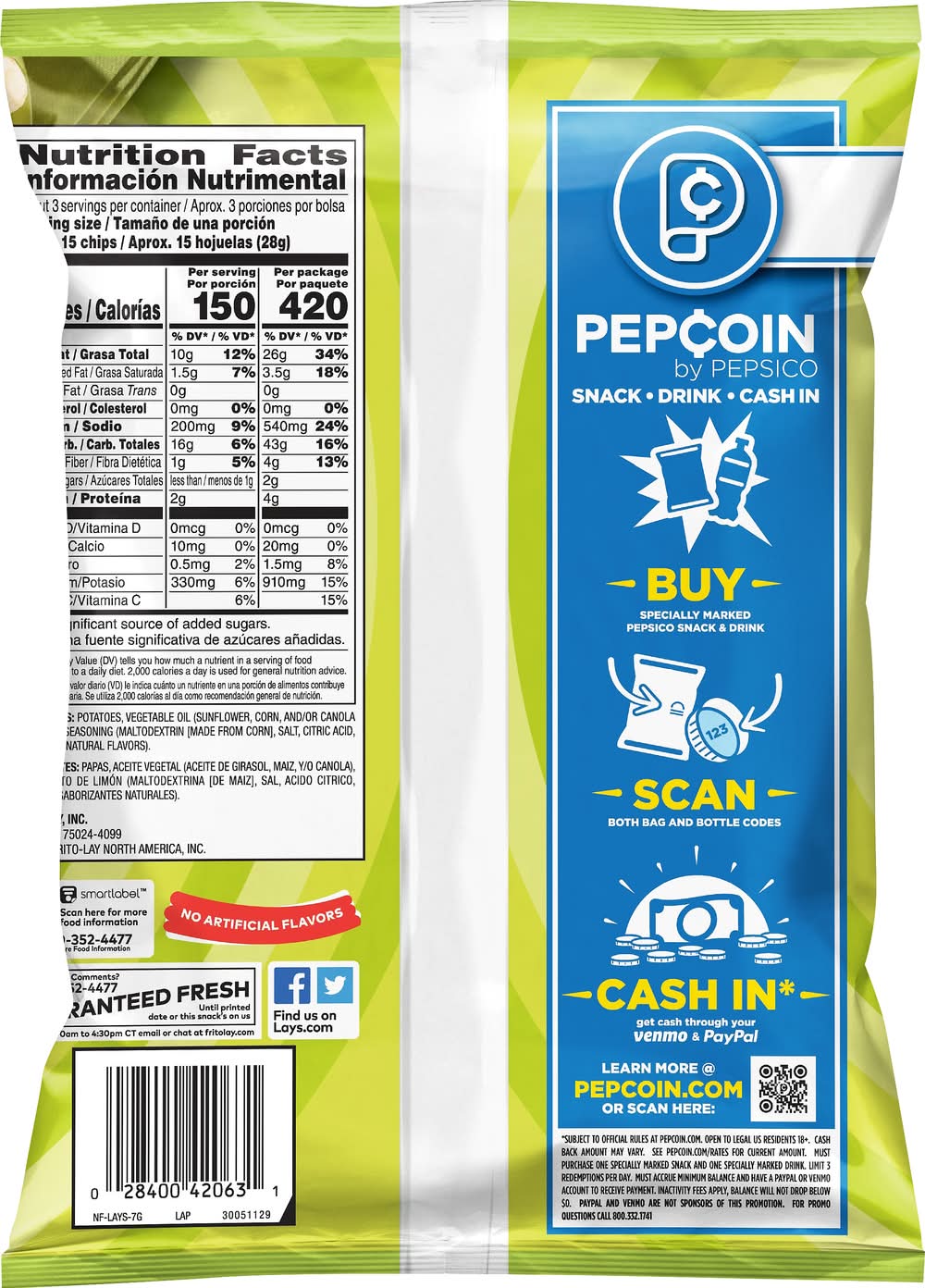Ingredients: Potatoes, Vegetable Oil (Sunflower, Corn, and/or Canola Oil), Limon Seasoning (Maltodextrin [Made from Corn], Salt, Citric Acid, Sugar, and Natural Flavors) Contains: Corn