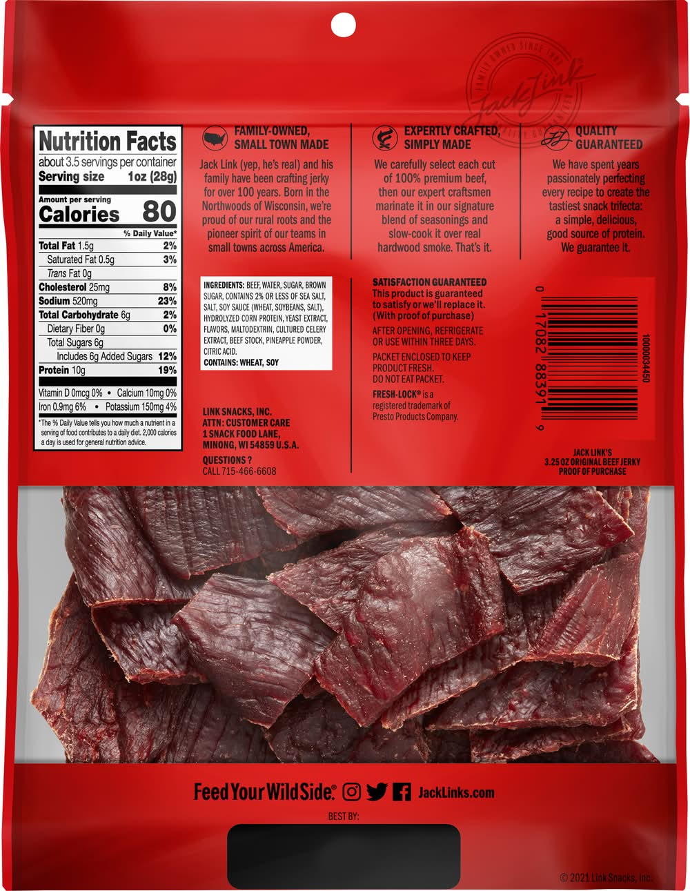 Jack Link's Original Slow Cooked & Hard Wood Smoked Beef Jerky (3.25 oz)