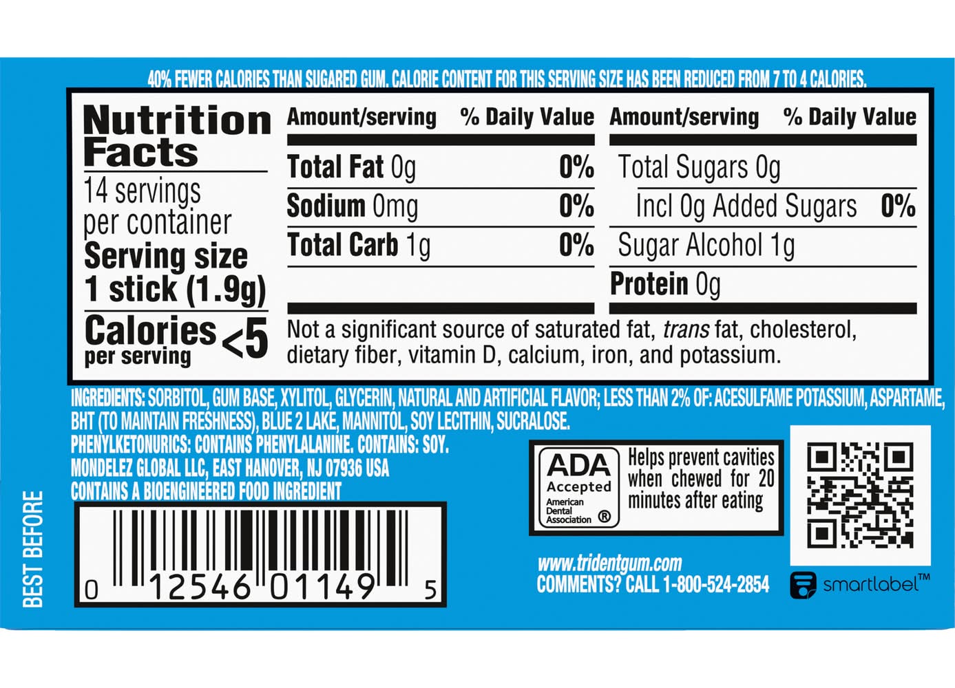 Trident Sugar Free Gum Sticks, Mint Bliss (0.94 oz, 14 ct)