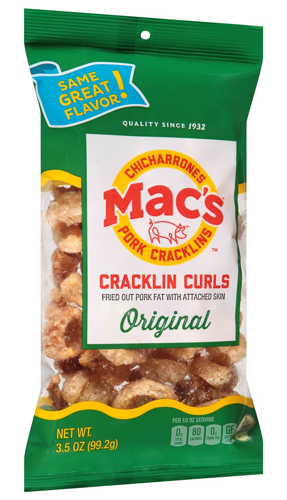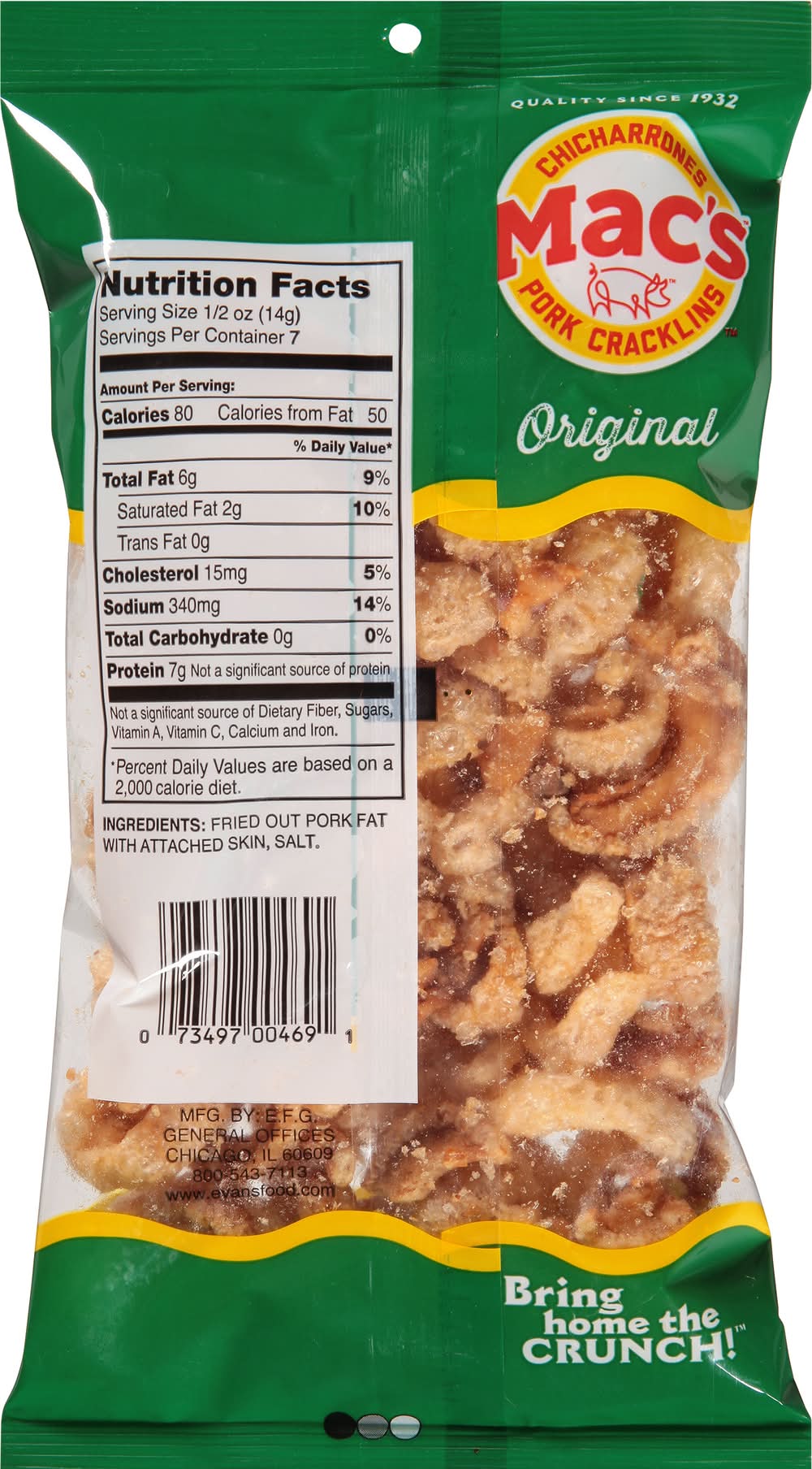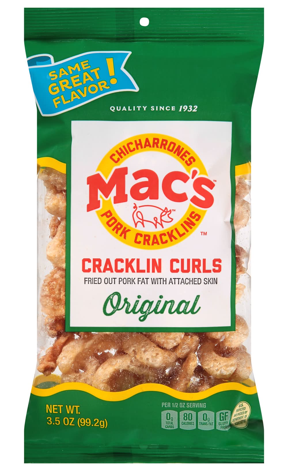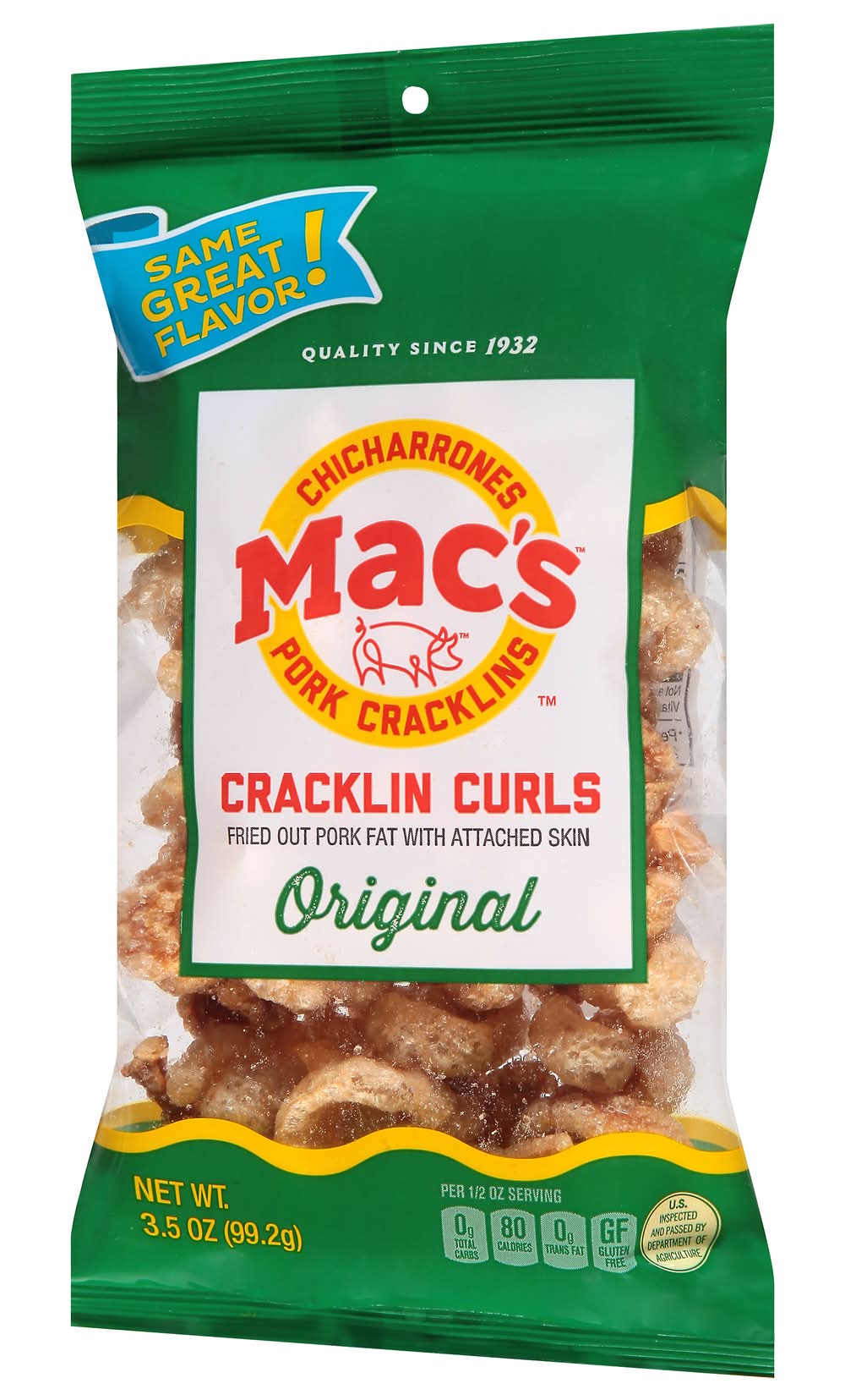 Cracklin Curls, Original • Number of servings: 7 • E.F.G., Chicago, IL, 60609, Ph: 800-543-7113
