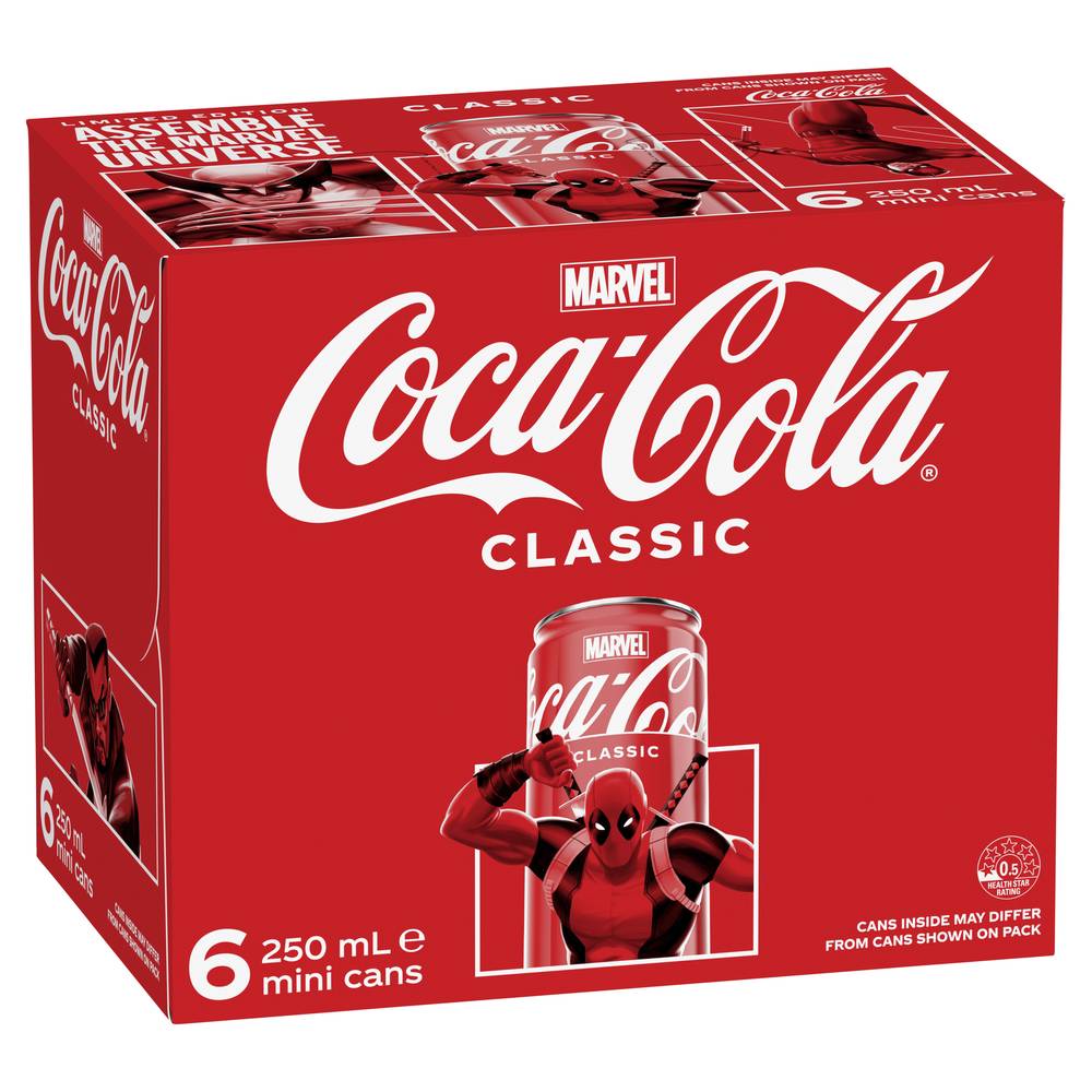 Coca Cola Classic Soft Drink Can 250mL x Pack 6