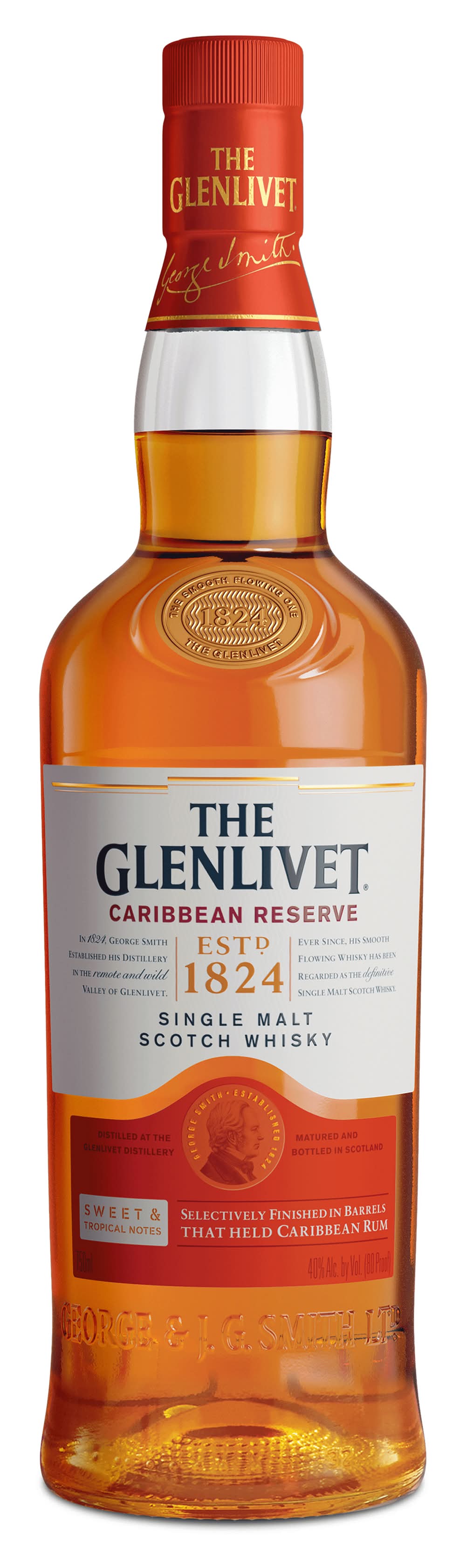 The Glenlivet Caribbean Reserve is a single malt scotch whisky with a bold, tropical twist. To create this product, The Glenlivet makers selectively finished a portion of the whisky in barrels that previously held Caribbean rum. The result is a well-balanced, exceptionally smooth, and sweet whisky. • Brand: The glenlivet • Alcohol by volume: 40%