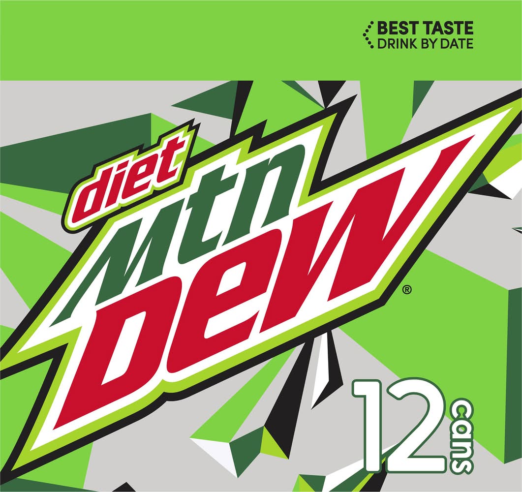 Diet Soda offers a flavored beverage option that retains the distinctive yellow-green color and taste of the original Mountain Dew. It is a no-calorie, sugar-free drink that contains caffeine and very low sodium. Consumers are encouraged to recycle the can after use. • Brand: Mountain dew • Flavor: Citrus • Pack size: 12 • PepsiCo, Purchase, NY • Packaging: Reusable