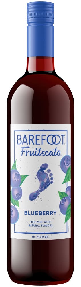 Bursting with all the flavors of juicy blueberries, Barefoot Blueberry FRUITSCATO makes every day just a little bit sweeter. Barefoot Fruitscato is a great entry-level wine that fits so many occassions - girls night in, BBQ, or fun at the lake. This scrumptious blend of red wine and natural flavors is a perfect pairing for fresh-out-of-the-oven chocolate brownies! • Brand: Barefoot wine • Alcohol by volume: 7.5%