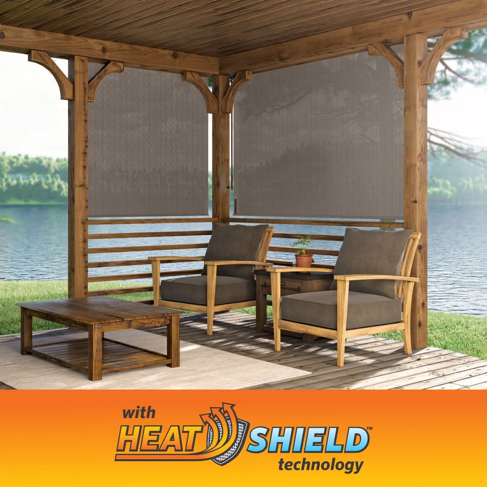 Featuring HeatShield: Innovative fabric technology created to actively reflect hot, infrared rays to feel up to 15°F cooler.. Breathe Easy: Toxin-free, mold and mildew resistant, quick-dry breathable knitted fabric.. Raise and lower your shade with our smooth wand-operated crank mechanism with removable 48-inch wand. Outdoor Fabric Performance: Cooling Signature fabric construction fosters airflow, regulates temperatures, and blocks up to 95% of harmful UV rays.. Coolaroo’s Signature Color Commitment: Color-infused fabrics promise day-one vibrancy through years of rain or shine.. Weather-Resistant Durability: Coolaroo Outdoor Roller Shades are rigorously tested in high-humidity environments to be mold, mildew, and rust resistant.. Easy Maintenance: Simply clean shades with water or mild soap, and air dry, leaving more time for relaxation.. Driven by Safety & Comfort: Designed for ultimate weather protection, Coolaroo Outdoor Roller Shades with HeatShield feature cool-touch fabric, U Use Location: Outdoor Color: Brown