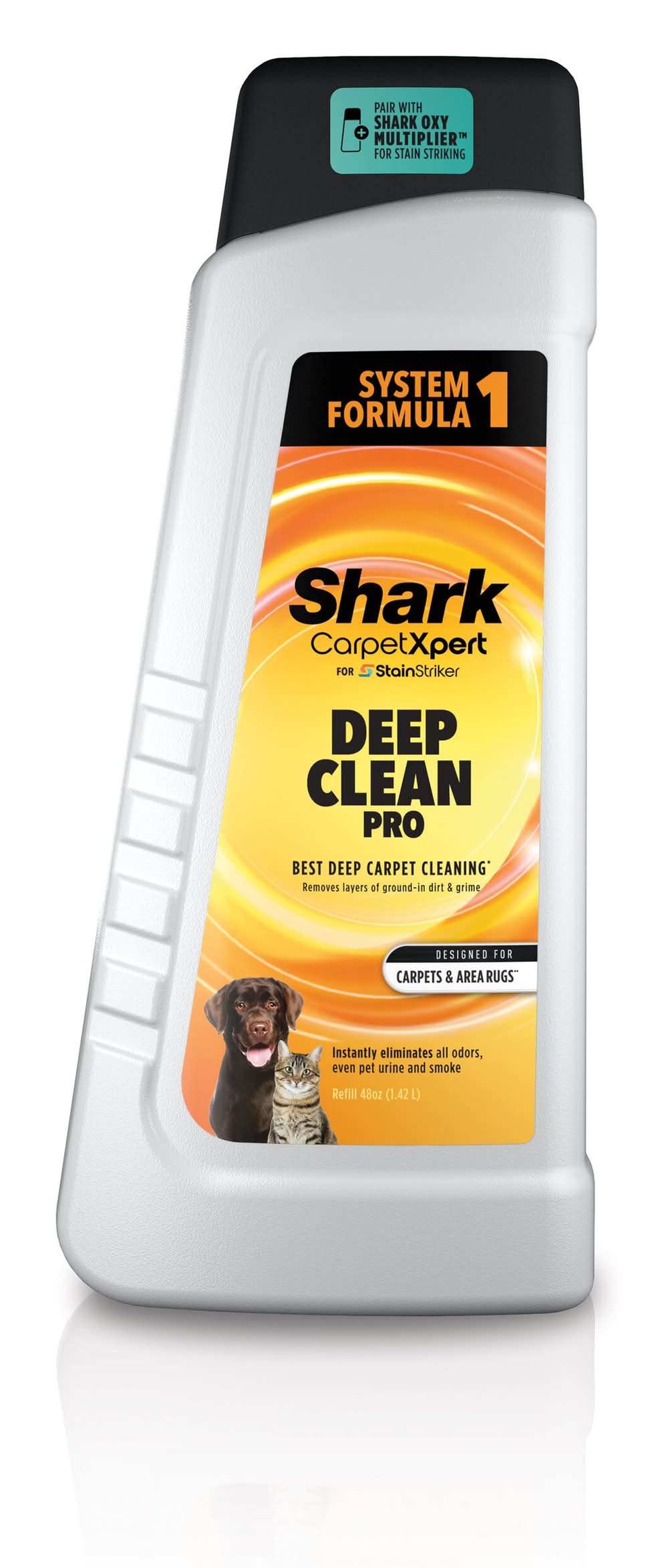 COMPATIBLE: Designed for use with all Shark® Carpet Cleaners. STAINSTRIKER TECHNOLOGY: Two unique chemicals mix and activate on contact in the handheld tool unleashing the power of OXY for 20X more stain-striking power*. PERFECT FOR PETS: Eliminates odors instantly and permanently, including pet urine and smoke.. WHOLE HOME CLEANING: Formulated for removing tough stains on all carpets, area rugs, upholstery, stairs, fabrics, and more.. TOUGH STAIN ELIMINATION: Activates on contact with Shark StainStriker OXY Multiplier™ formula to unleash the power of OXY, removing even the toughest stains and odors, No premix required.. WHAT'S INCLUDED: 48 oz Shark CarpetXpert Deep Clean Pro Formula. *vs Shark Deep Clean Pro Formula ^Based on ASTM F2828 vs consumer carpet cleaners using included solution. For CA Residents Only: WARNING: This product can expose you to chemicals including Lead which are known to the State of California to cause cancer and birth defects or other reproductive harm. For more information go to www.P65Warnings.ca.gov.