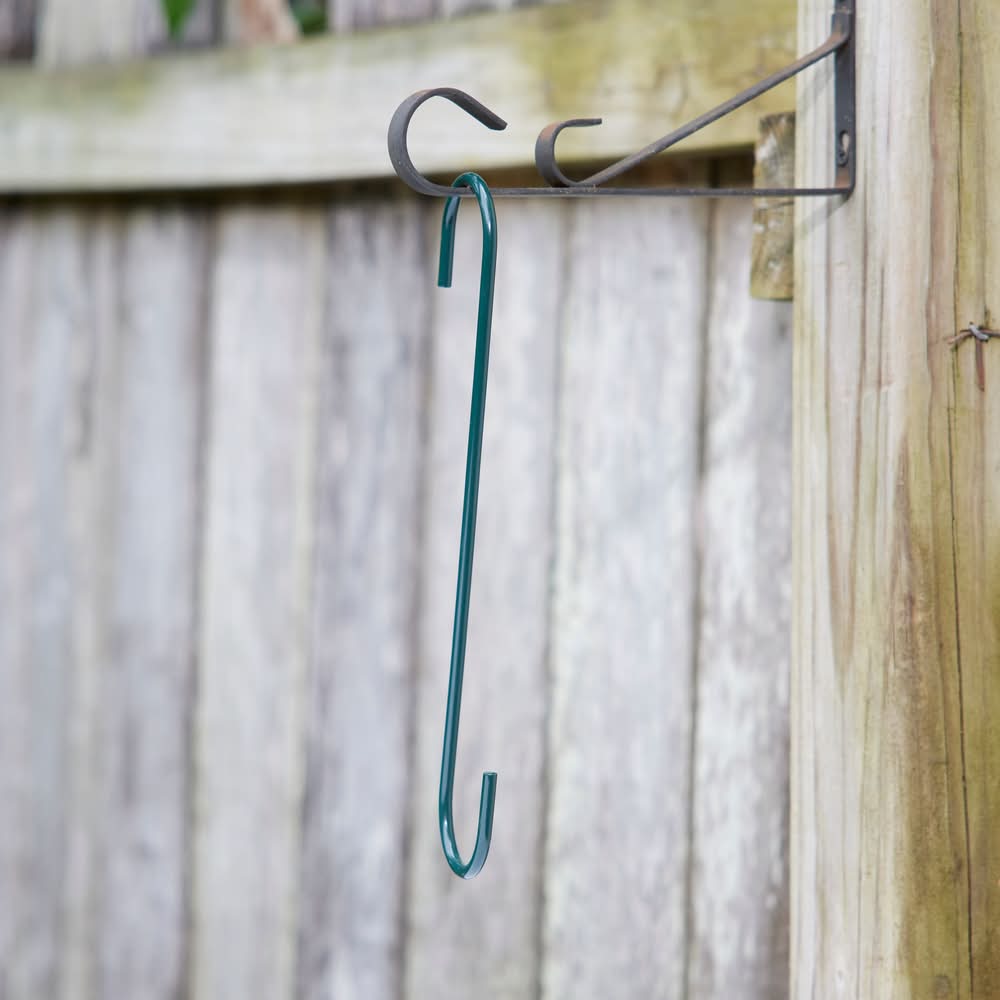 12.1 inch dark green metal extension hook. Constructed from durable mild steel. Great for hanging bird feeders or hanging plants. Color: Green
