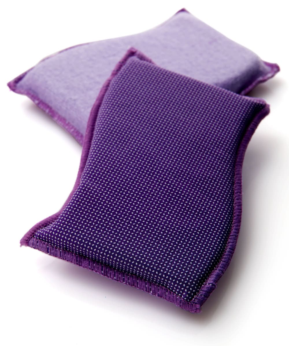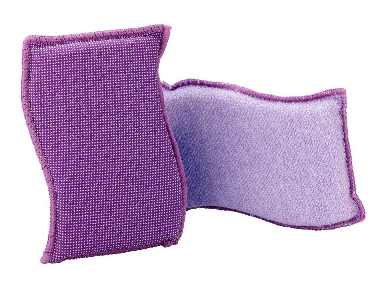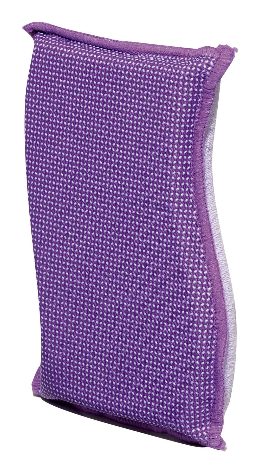 Rinses clean - even eggs and cheese won't stick. Two-sided for scouring and wiping. Non-Scratch Cleaning. Long lasting scrubbing material. Scrubbing surface rinses clean with water, the reverse side of the scrubber is a soft absorbent cloth that is great for wiping up spills. Scotch-Brite is long lasting and reusable. Use Location: Indoor Color: Purple