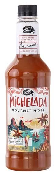 Master of Mixes Michelada Gourmet Mixer combines tomato juices, an array of peppers, savory umami, and a balance of lime and lemon juices. It is crafted for pairing with beer to create a flavorful Michelada. The 750 ml bottle provides a convenient amount for multiple servings.
