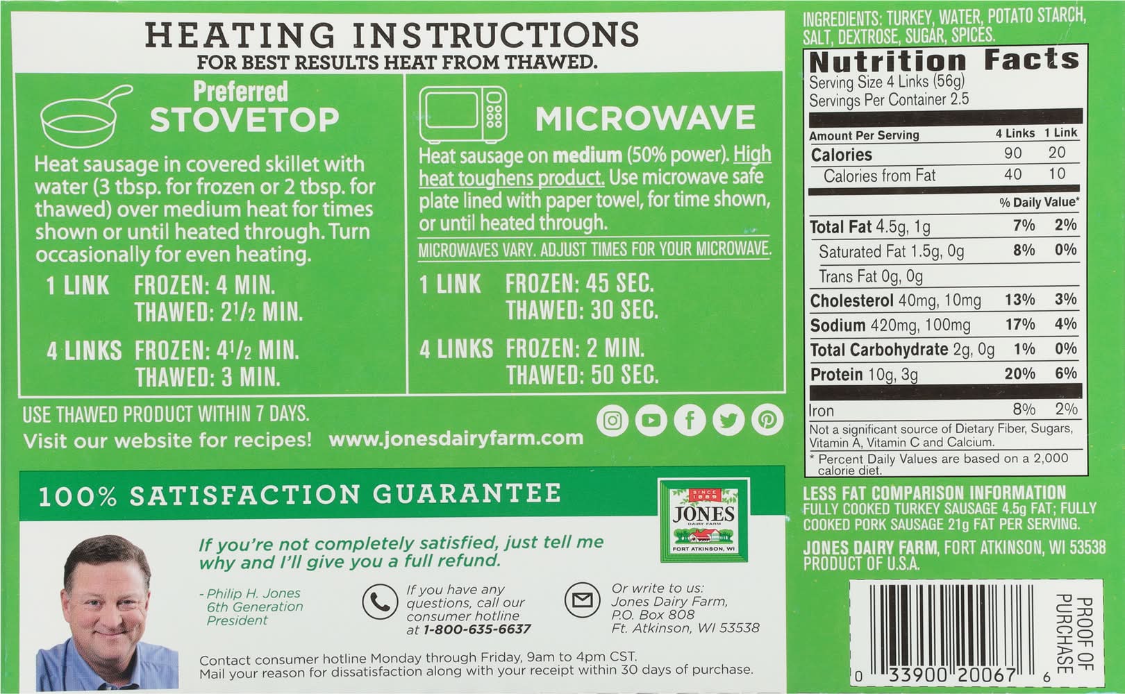 Jones Dairy Farm Golden Brown All Natural Turkey Sausage Links (5 oz, 10 ct)
