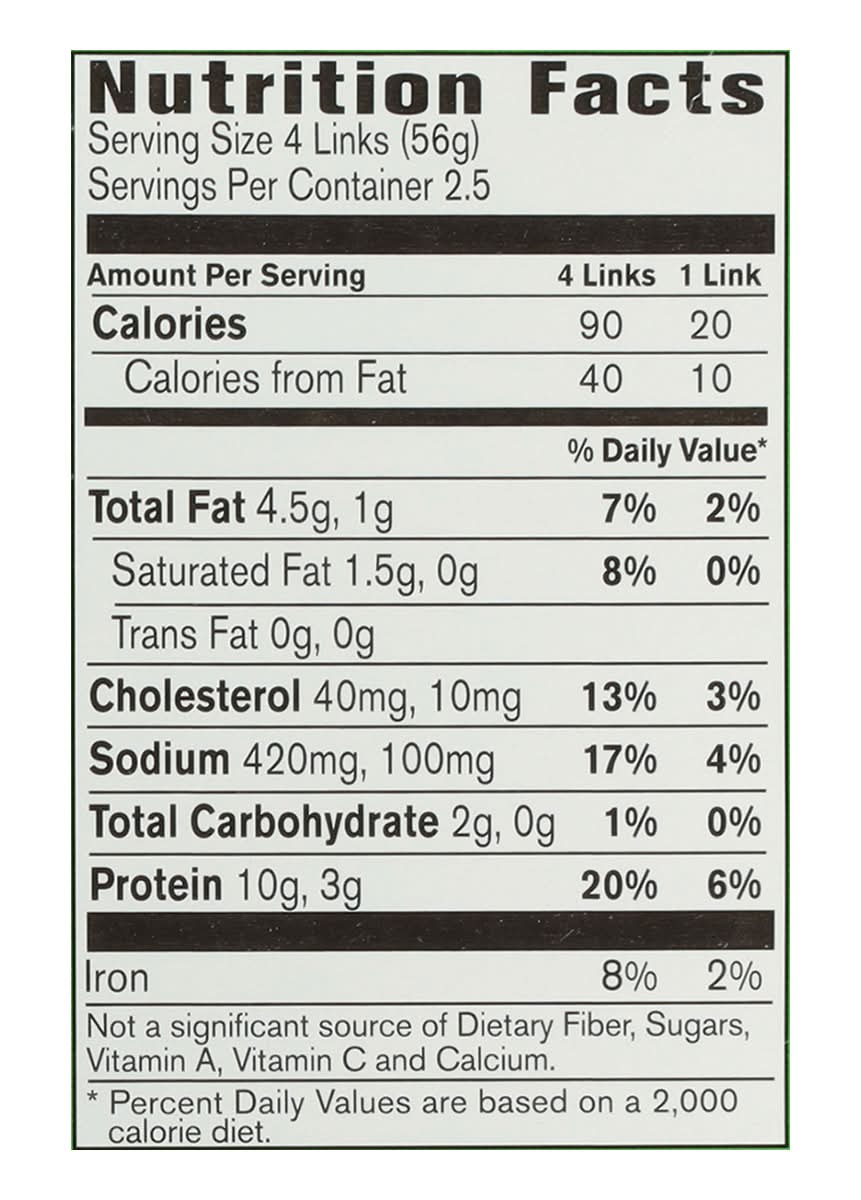 All Natural* * No Artificial Ingredients and Only Minimally Processed. Turkey Raised with No Added Hormones** ** Federal Regulations Do Not Permit the Use of Hormones in Poultry. Less Fat Comparison Information Fully Cooked Turkey Sausage 4.5g Fat; Fully Cooked Pork Sausage 21g Fat per Serving. Jones Dairy Farm, Fort Atkinson, WI, 53538