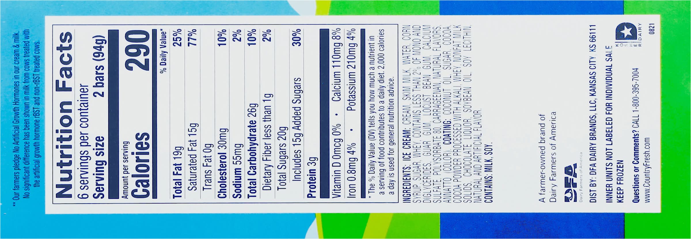 Ice Cream Bars, Vanilla • Number of servings: 6 • DFA Dairy Brands, LLC, Kansas City, KS, 66111