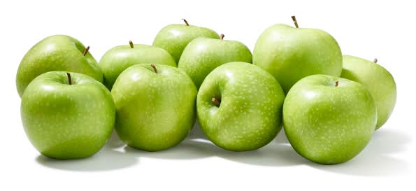 Granny Smith apples vary in color from medium to dark green and sometimes have a slight blush. They are round with a smooth contour. This extremely tart and crunchy apple is firm and crisp with a bright white flesh that resists browning when sliced. Granny Smith apples are best for salads, snacking, baking, pies, sauces, and freezing.