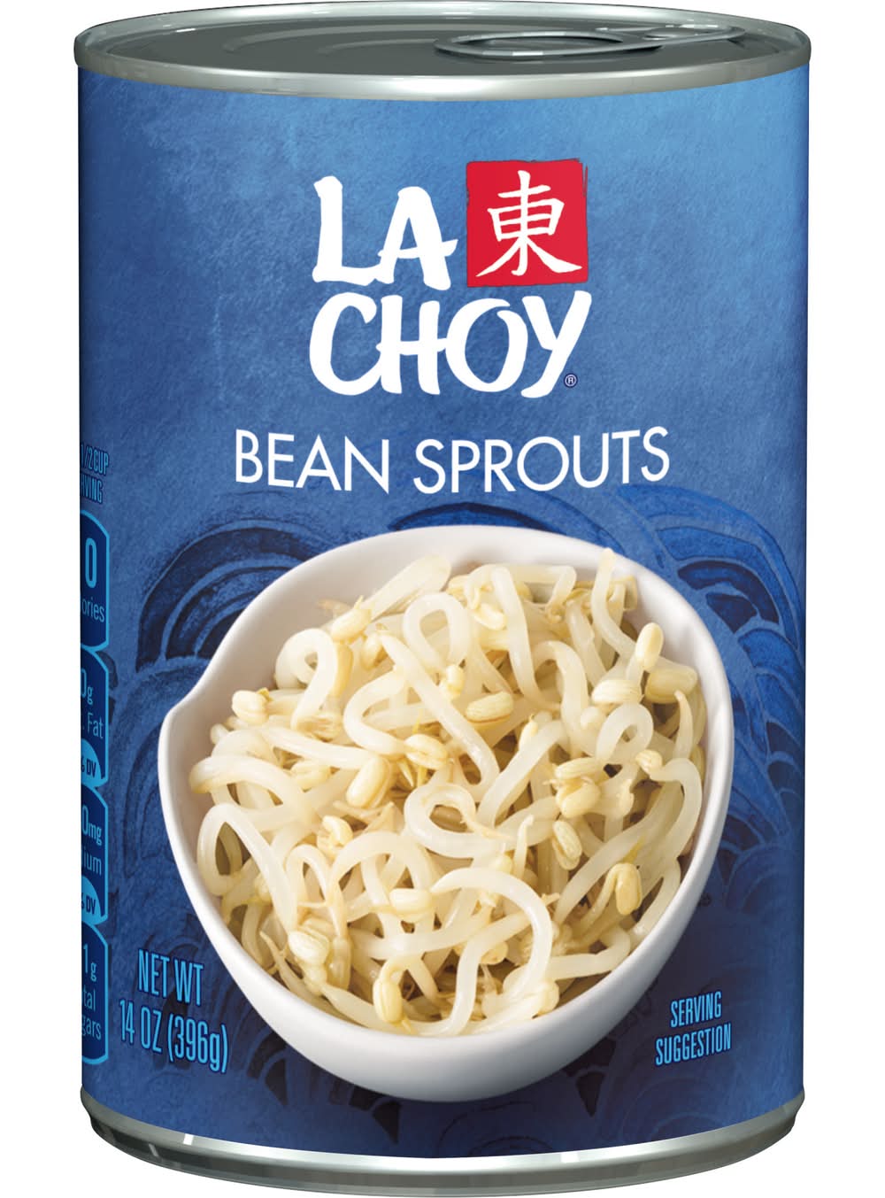 Since 1922, La Choy has delivered Asian-inspired ingredients, helping people prepare quick and delicious meals for their families with confidence. Make mealtime easier and add a touch of Asian flavor to your favorite meals with La Choy Bean Sprouts. La Choy Bean Sprouts are an easy way to add flavor and crunch to Asian soups, salads, and meals. Open a can of La Choy Bean Sprouts and transform a simple salad or soup into something special. Each 14 Ounce can of La Choy Bean Sprouts contains 10 calories with 0 grams of fat and 1 gram of protein per serving. • Conagra Brands, P.O. Box 3534,Chicago,IL,60654 • Packaging: Reusable